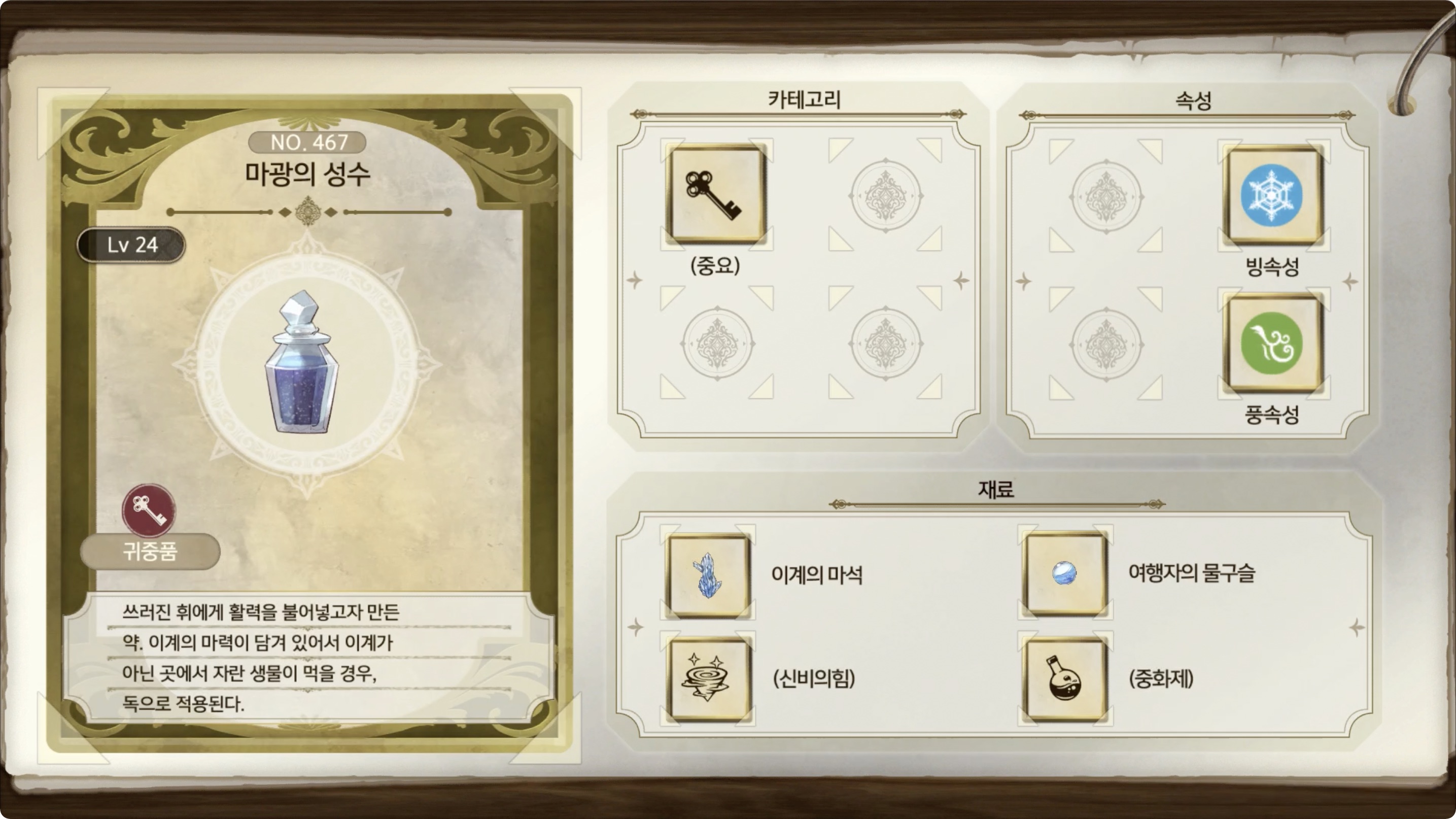 라이자의 아틀리에 2 - 아이템 도감 NO.467 마광의 성수