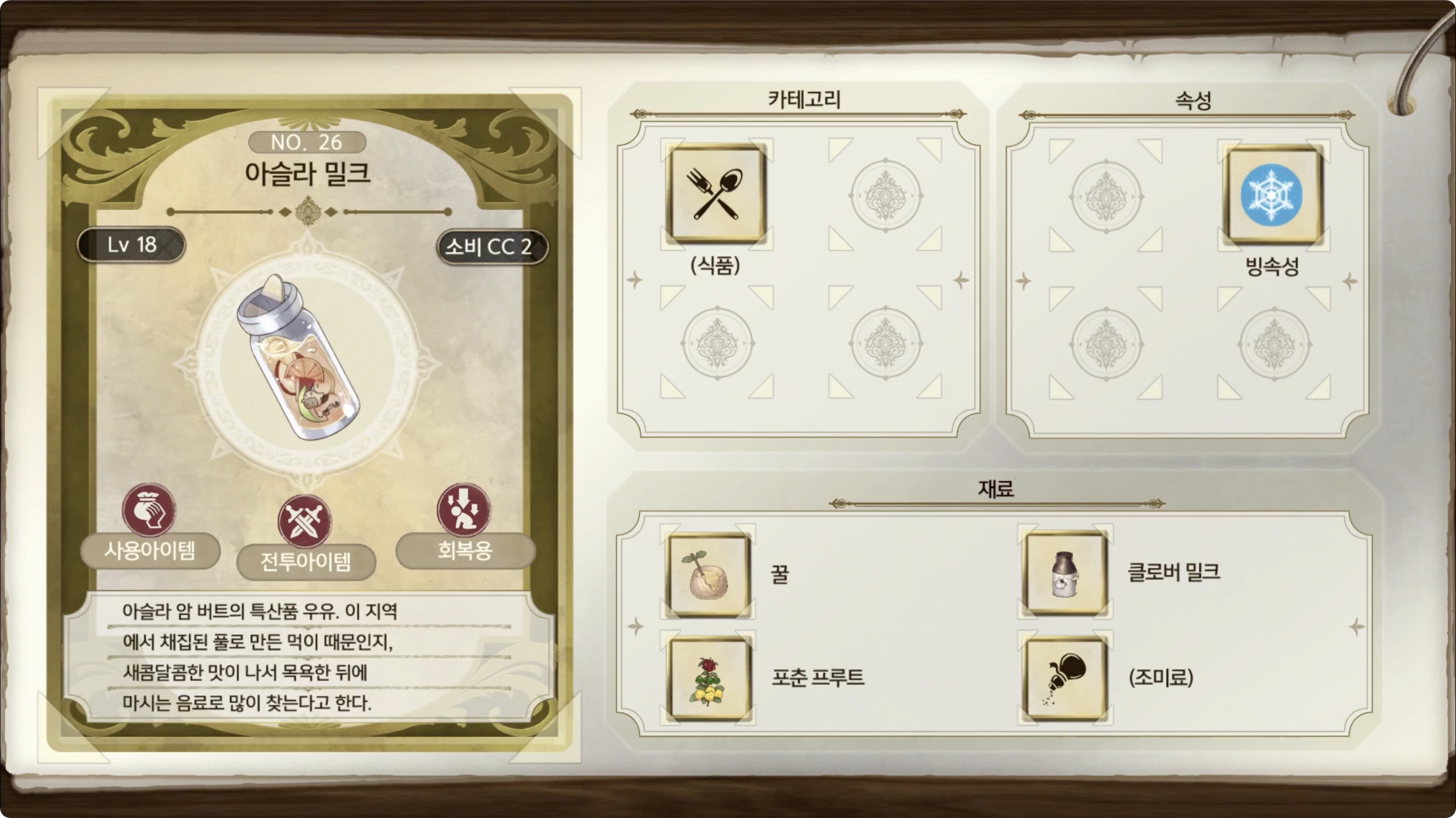 라이자의 아틀리에 2 - 아이템 도감 NO.026 아슬라 밀크