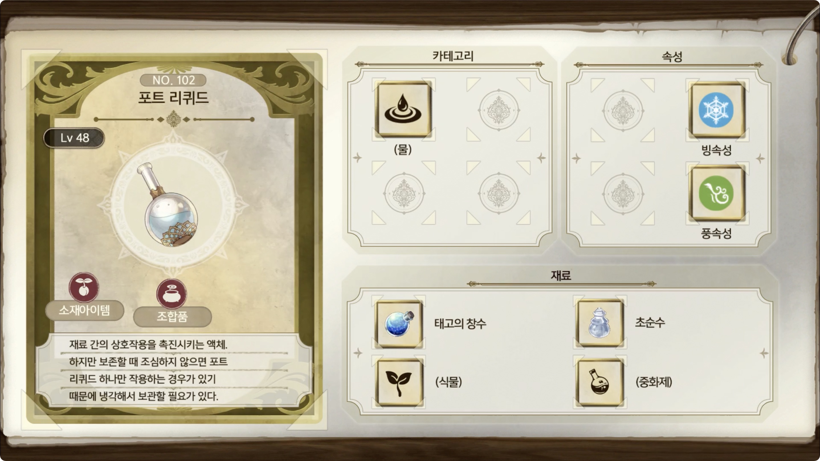 라이자의 아틀리에 2 - 아이템 도감 NO.102 포트 리퀴드