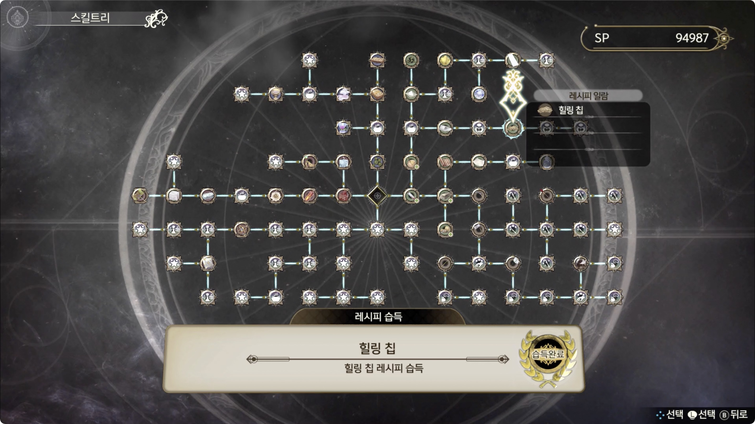 스킬트리를 통해 레시피 획득