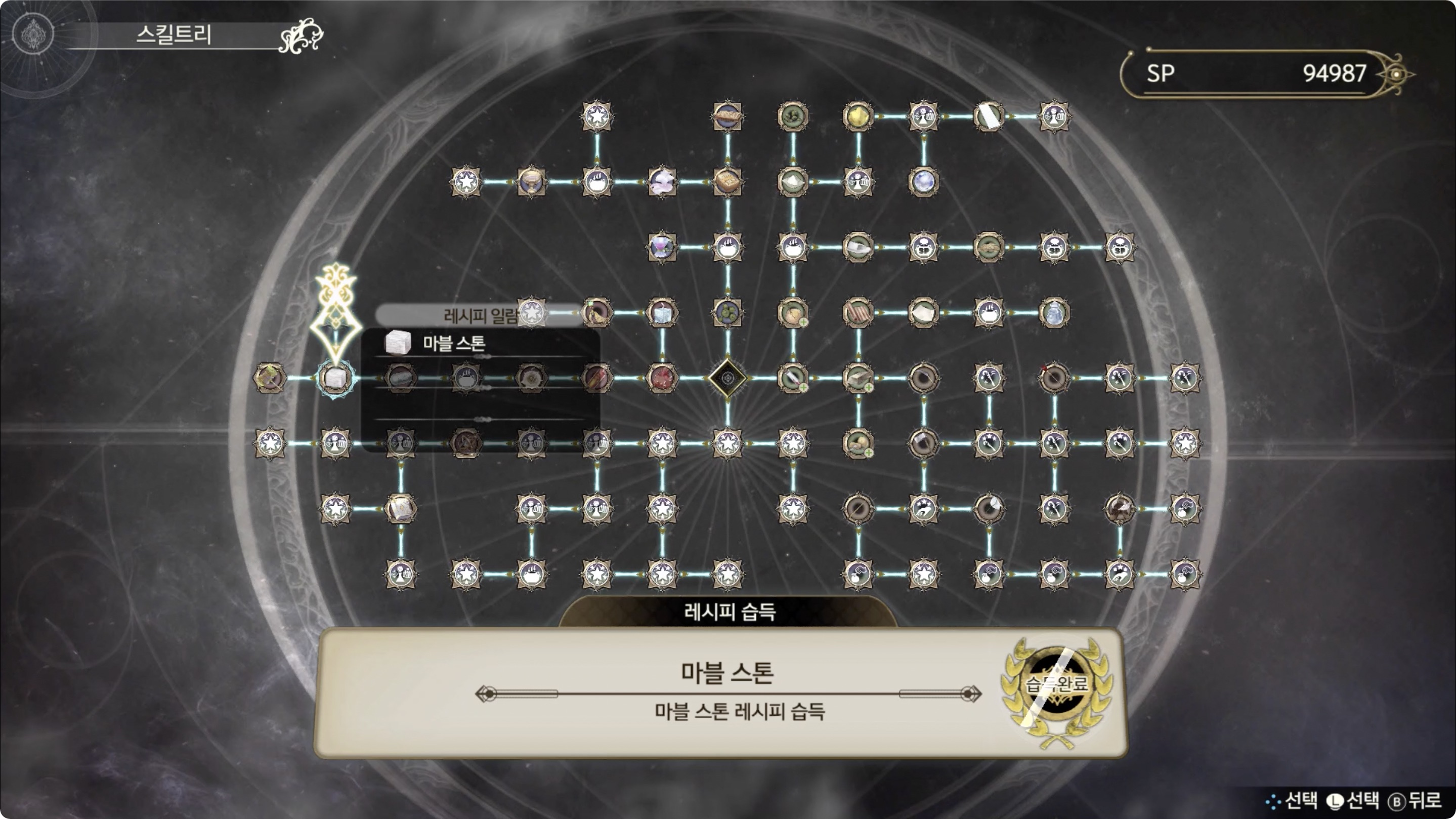 스킬트리에서 레시피 획득