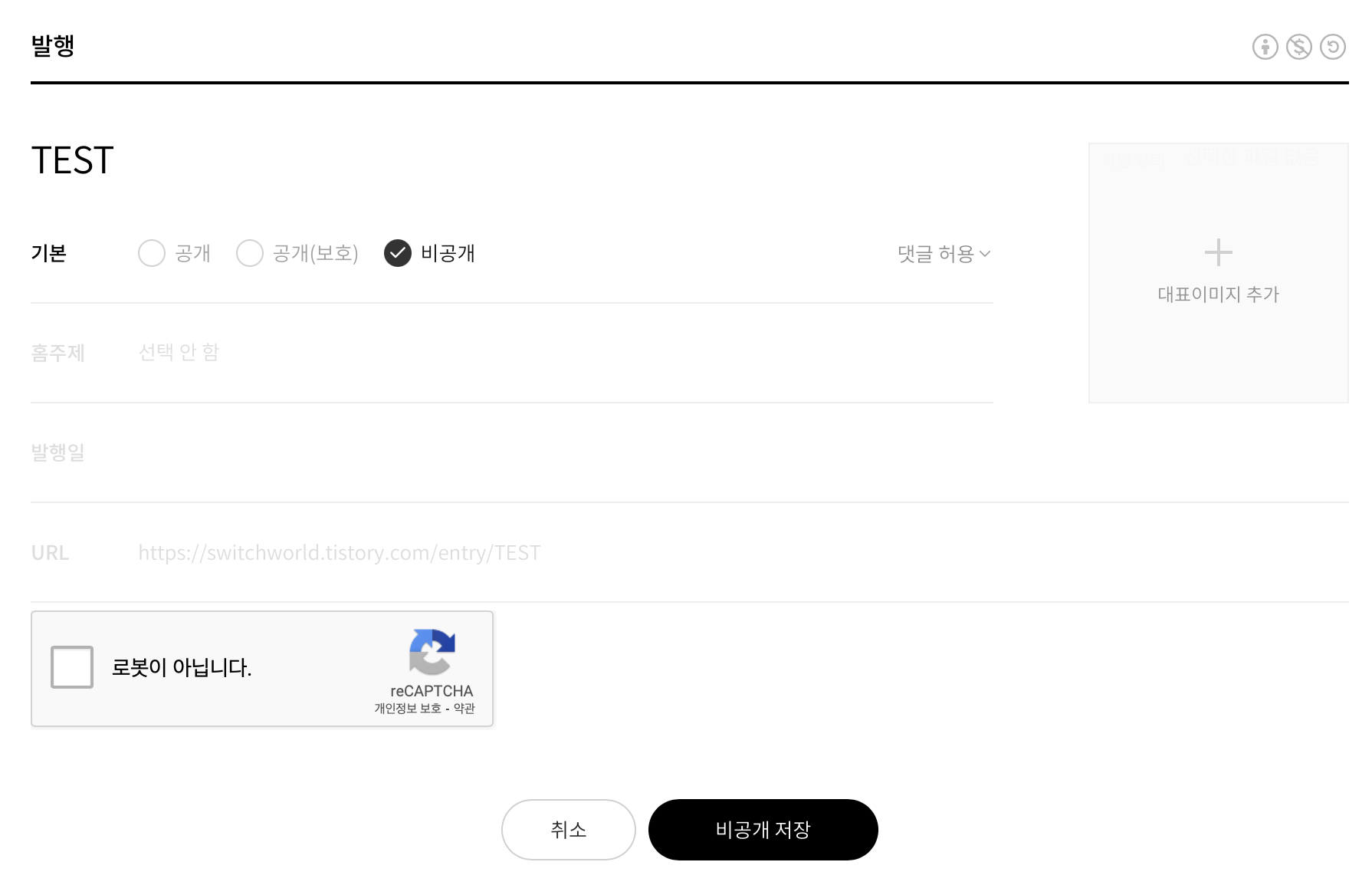현재 새로운 글 작성 뿐만아니라 기존 글의 수정을 할 때에도 100% 확률로 로봇 확인 테스트가 진행됩니다.
