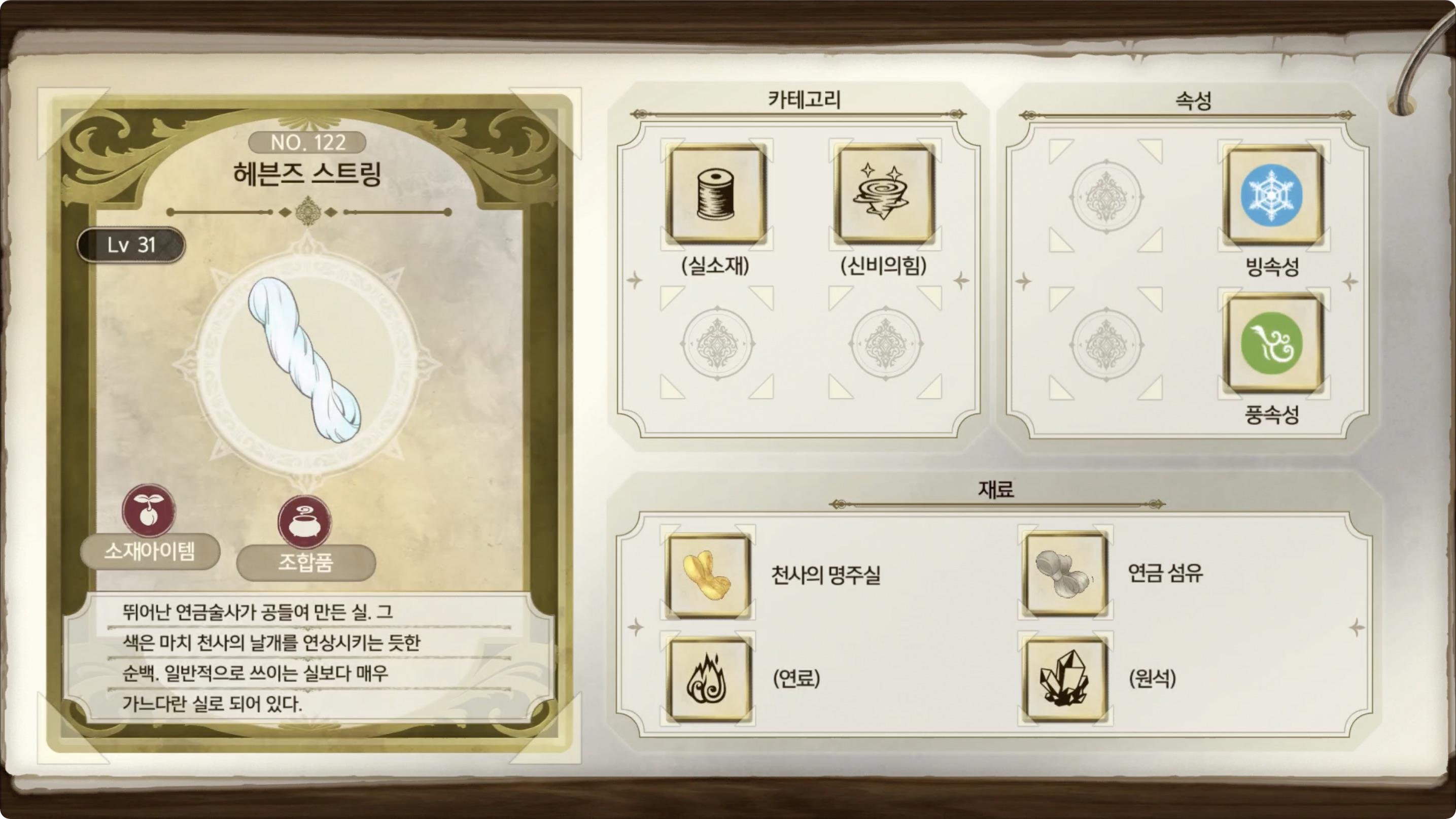 라이자의 아틀리에 2 - 아이템 도감 NO.122 헤븐즈 스트링