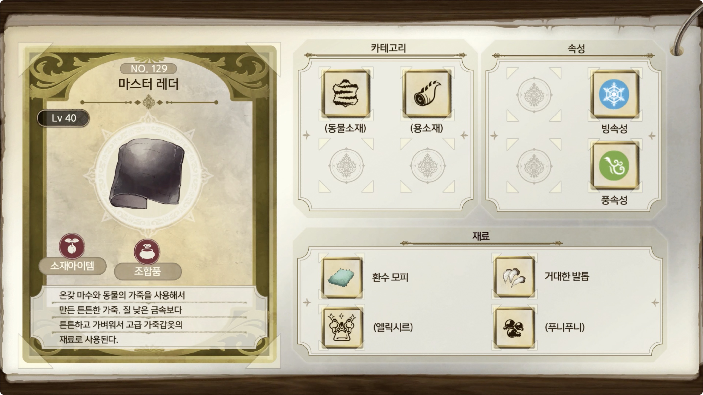 라이자의 아틀리에 2 - 아이템 도감 NO.129 마스터 레더