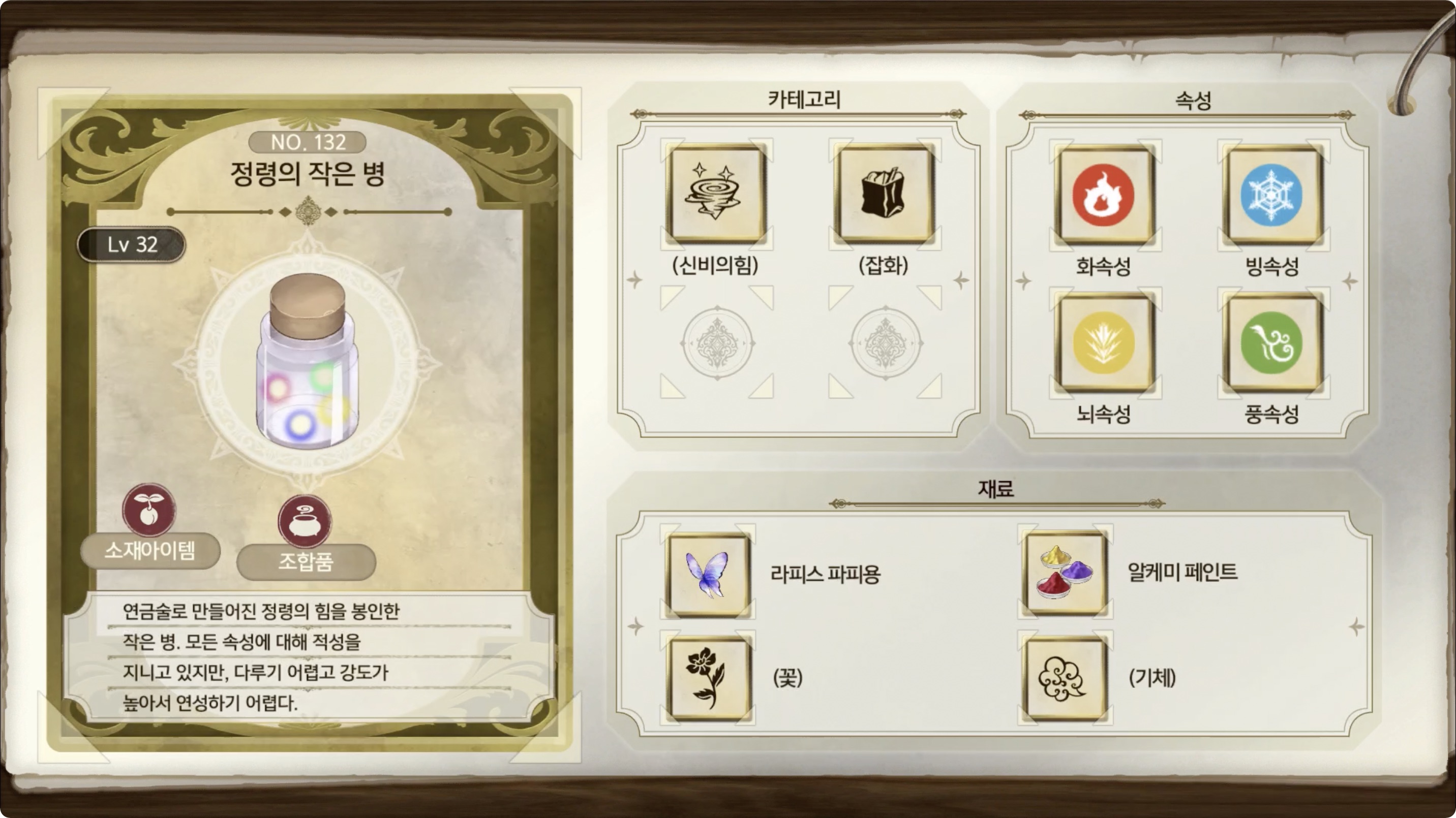 라이자의 아틀리에 2 - 아이템 도감 NO.132 정령의 작은 병