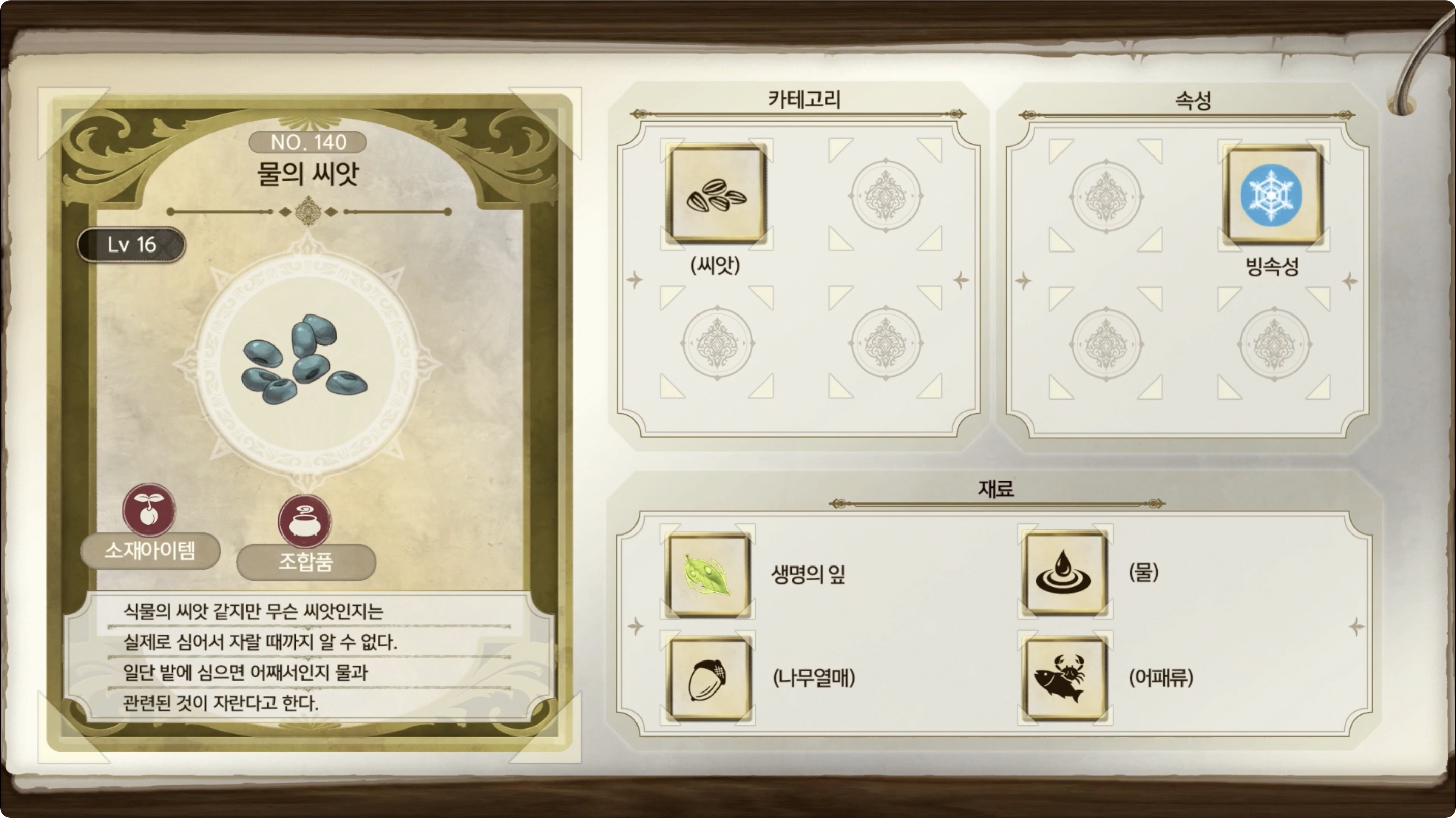 라이자의 아틀리에 2 - 아이템 도감 NO.140 물의 씨앗