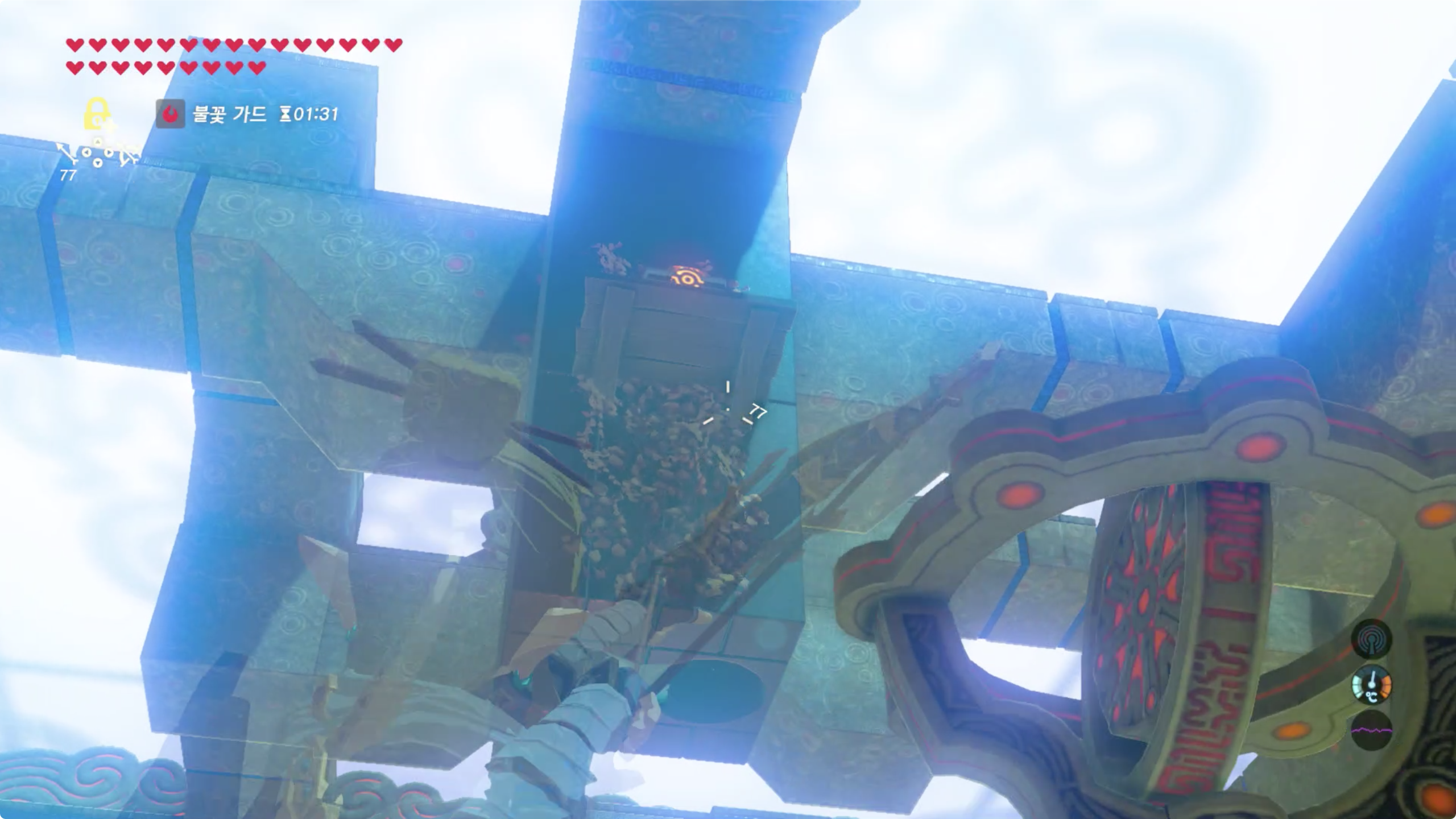 마지막 스위치를 누르러 가기전 왼쪽 뒤에는 보물 상자가 있으니 바람을 타고 건너가 획득 하도록 하자