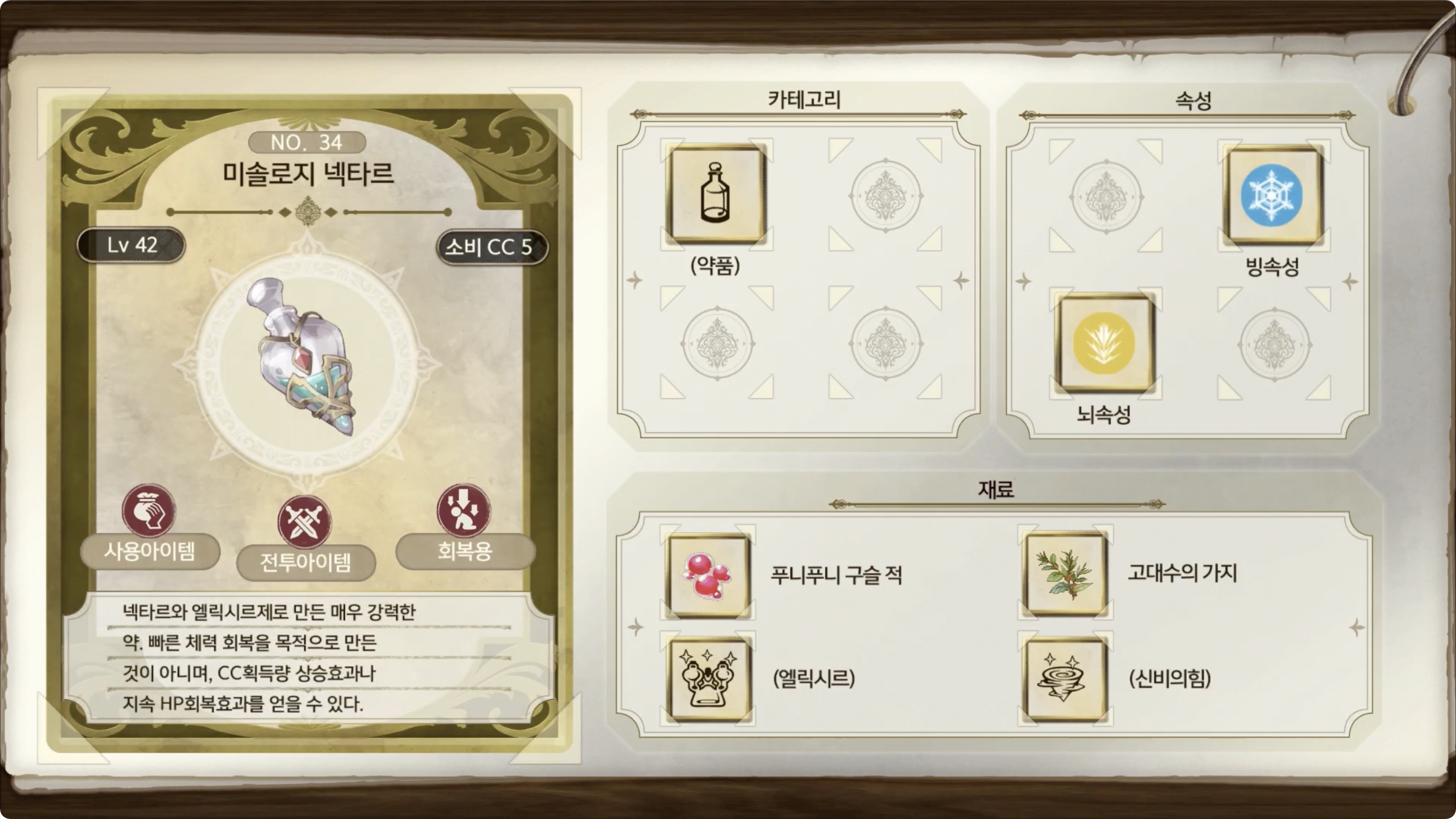 라이자의 아틀리에 2 - 아이템 도감 NO.034 미솔로지 넥타르