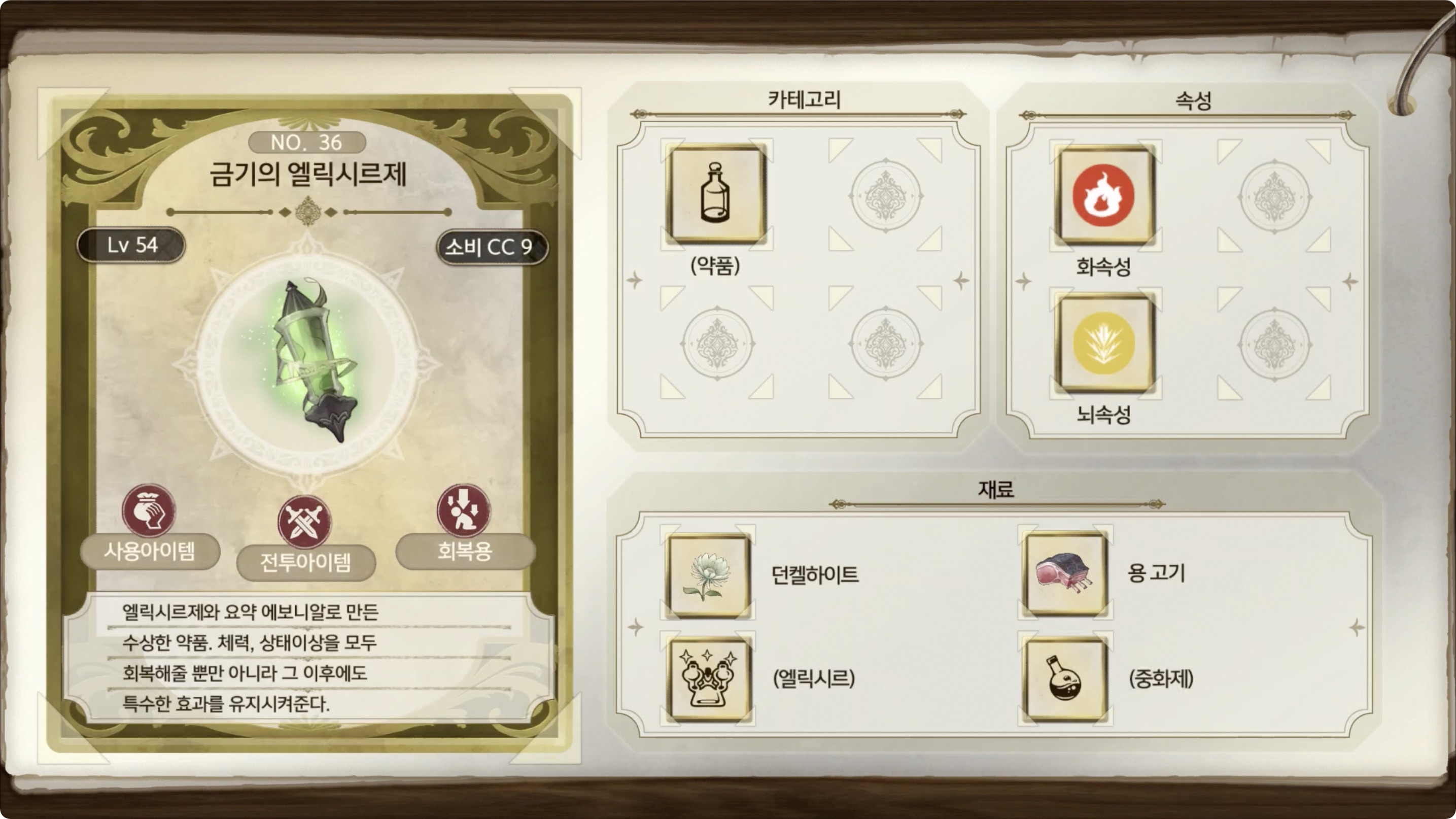 라이자의 아틀리에 2 - 아이템 도감 NO.036 금기의 엘릭시르제