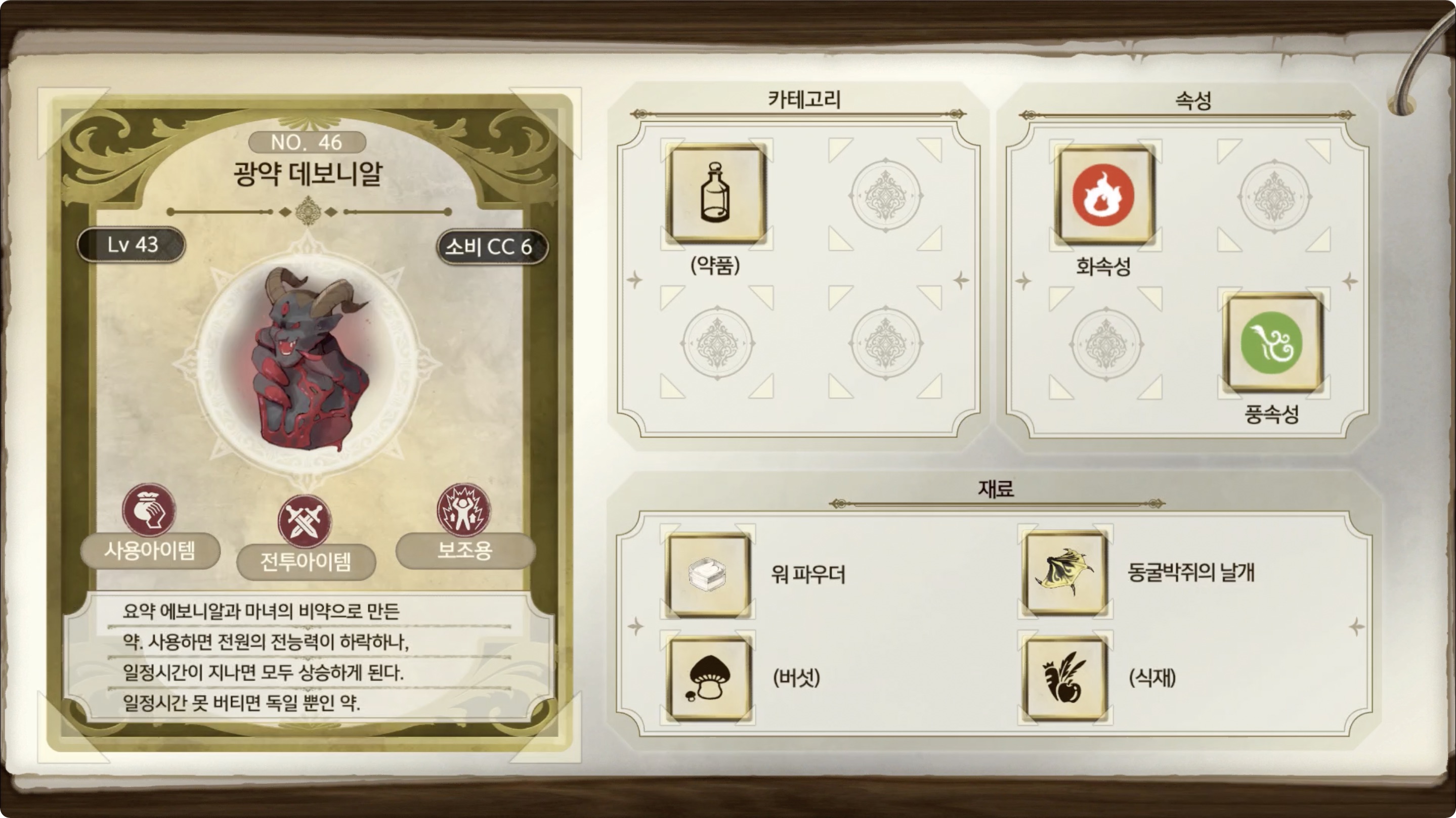 요약 에보니알과 마녀의 비약으로 만든 약.
