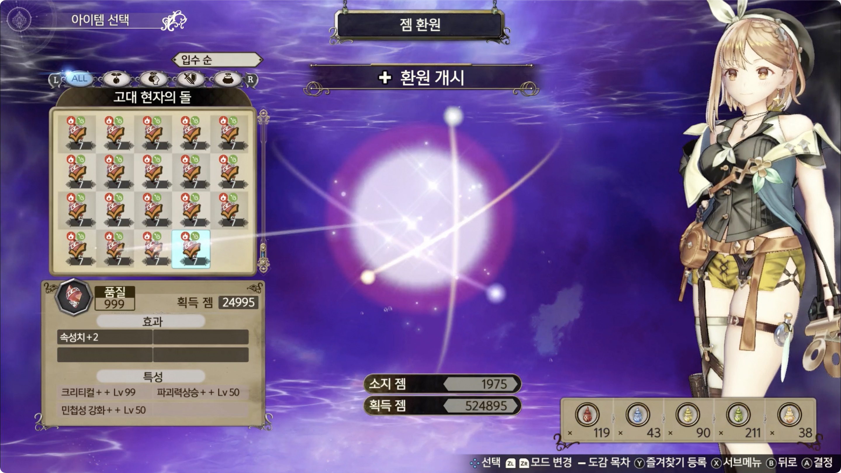 라이자의 아틀리에2 - 젬을 무한대로 늘리는 방법 (고대 현자의 돌)