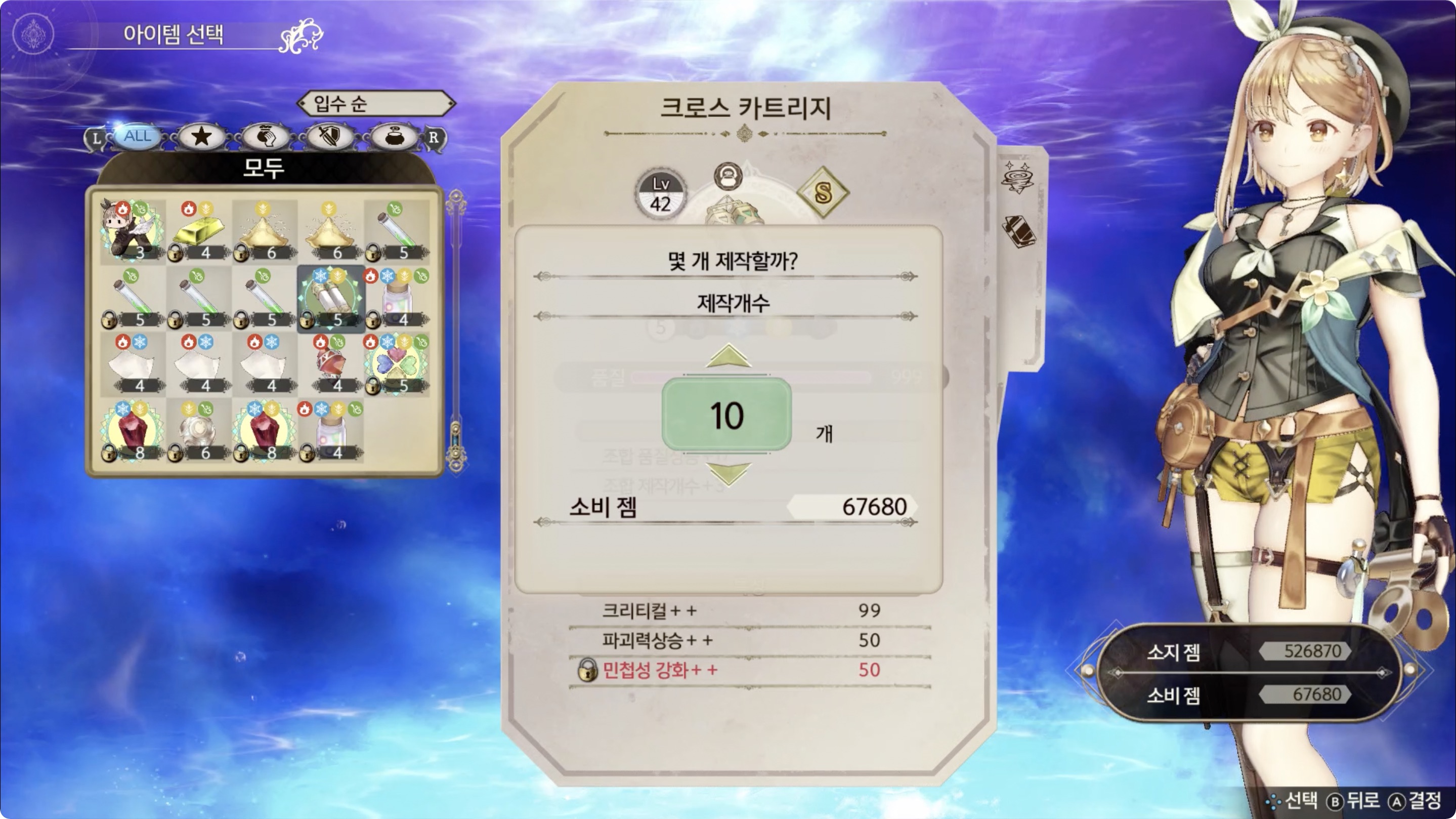 크로스 카트리지의 효과로 인하여 「넣은 개수 * 조합 제작개수+3」 이 되기 때문에 한번에 대량으로 생산됩니다.