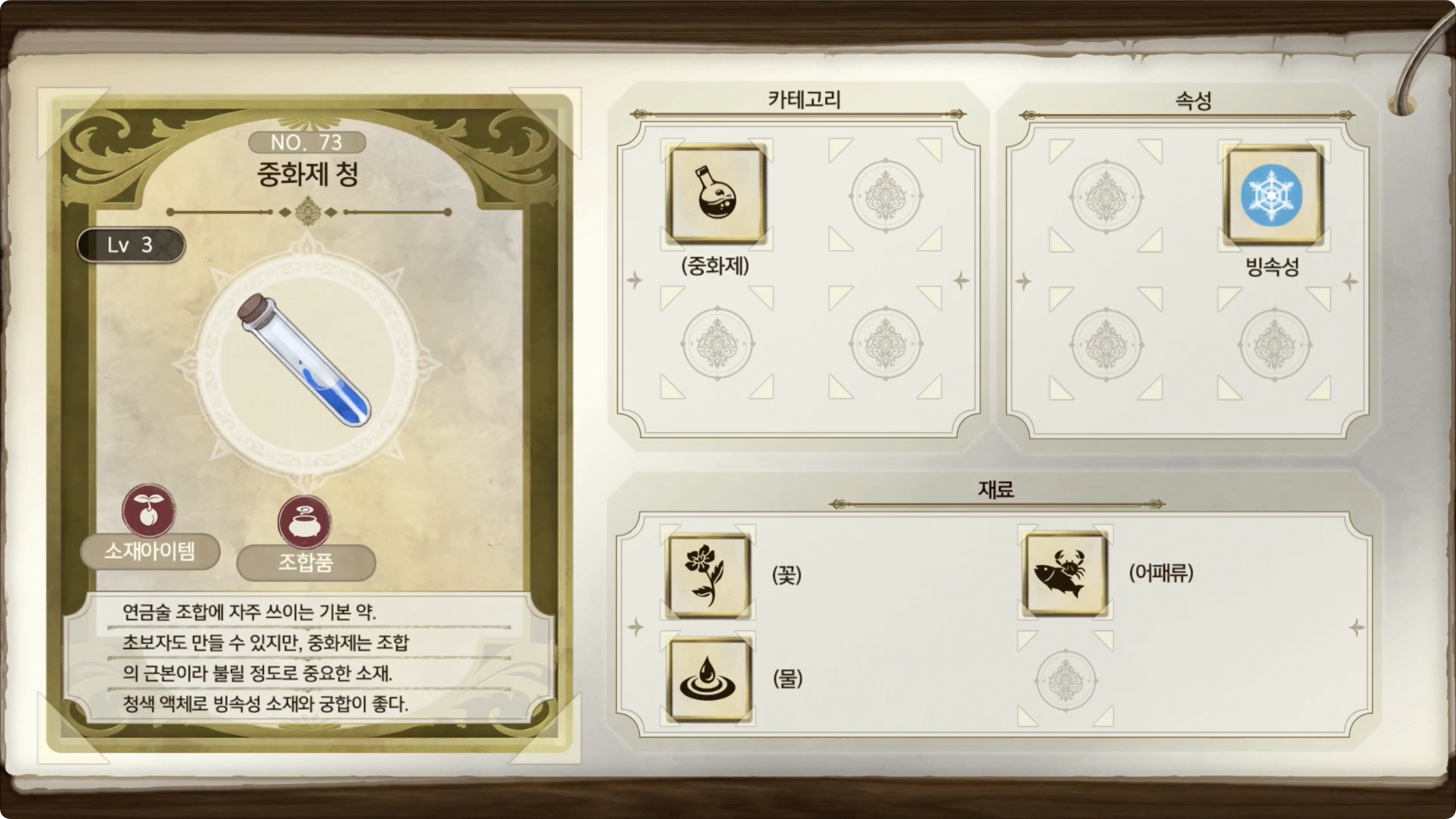 라이자의 아틀리에 2 - 아이템 도감 NO.073 중화제 청