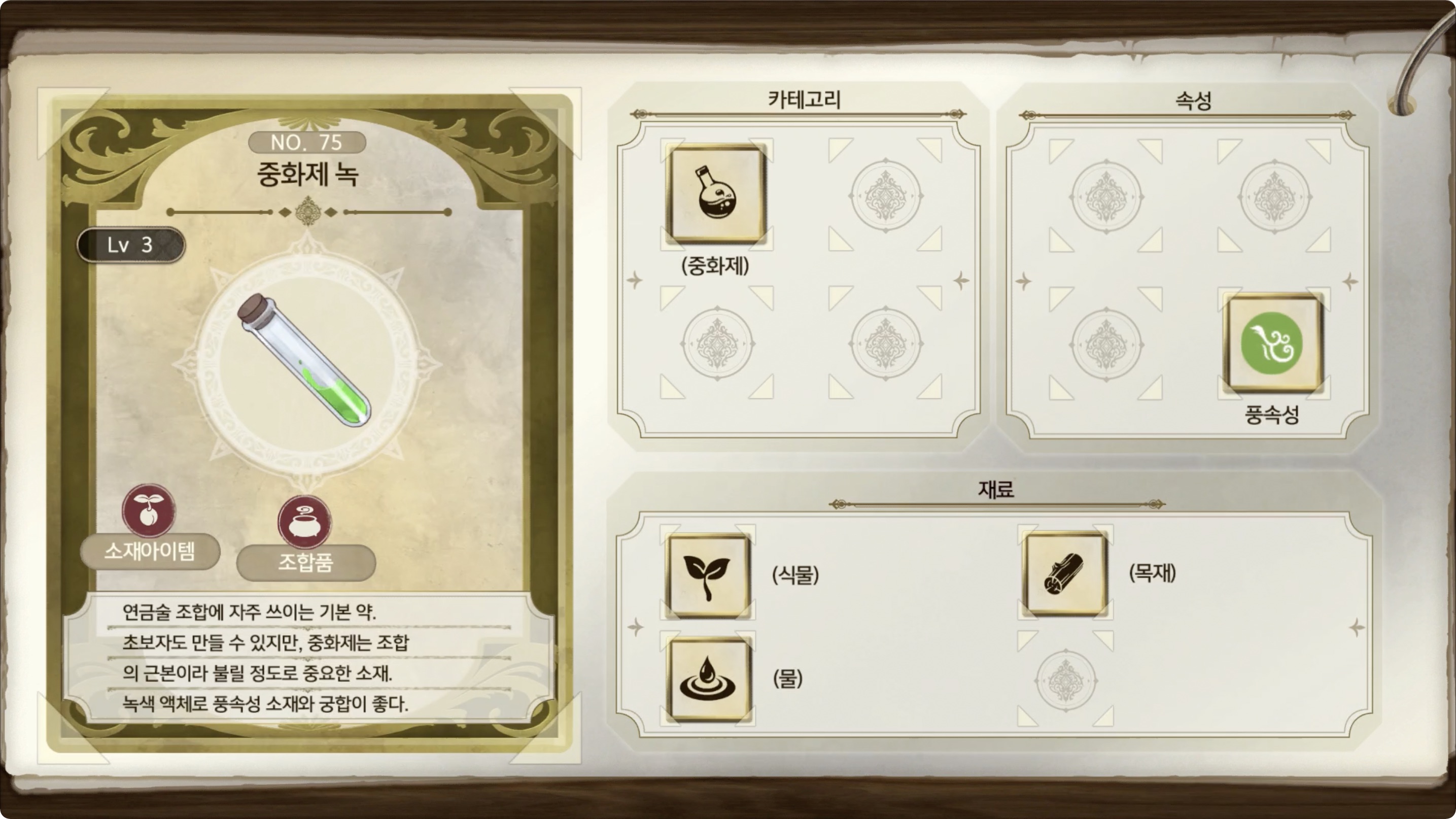 라이자의 아틀리에 2 - 아이템 도감 NO.075 중화제 녹