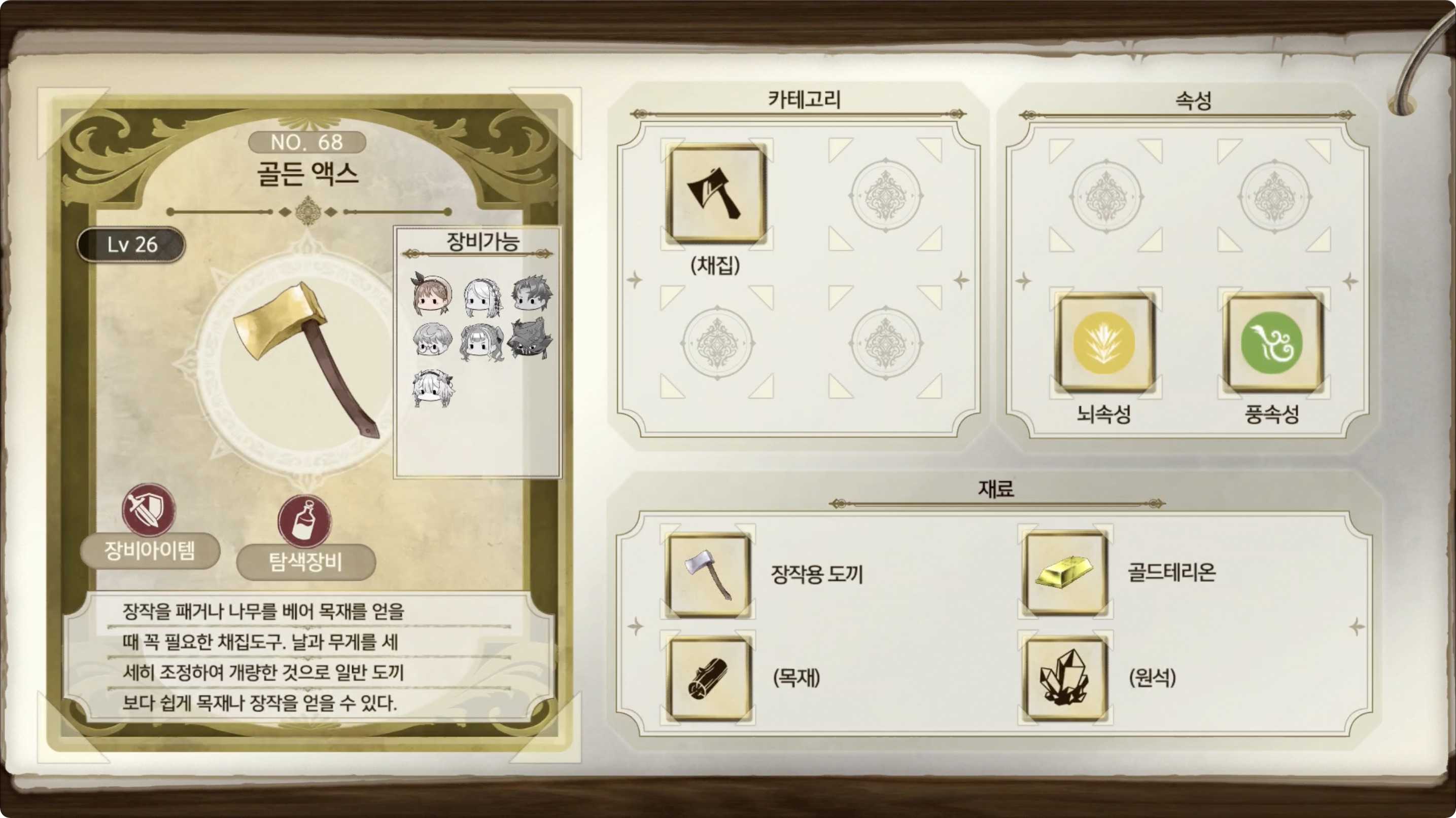 라이자의 아틀리에 2 - 아이템 도감 NO.068 골든 액스