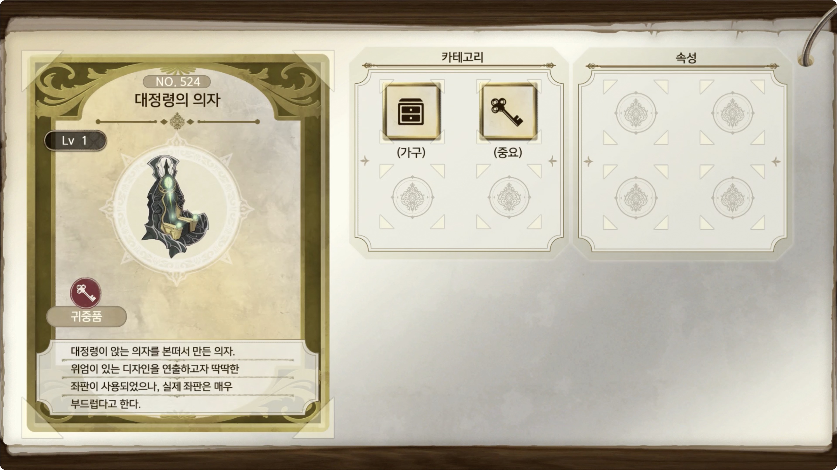라이자의 아틀리에 2 - 아이템 도감 NO.524 대정령의 의자