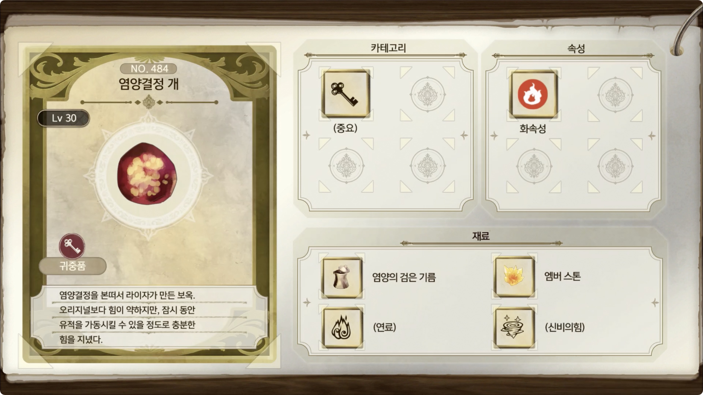 라이자의 아틀리에 2 - 아이템 도감 NO.484 염양결정 개
