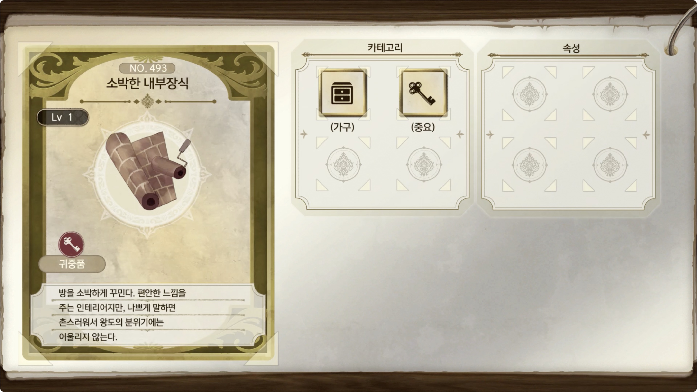 라이자의 아틀리에 2 - 아이템 도감 NO.493 소박한 내부장식