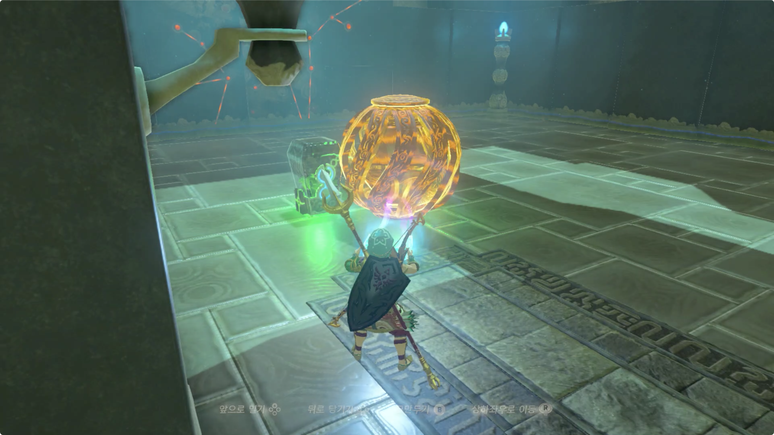 이제 마그넷 캐치로 이 구슬을 잡은 다음 출구 왼쪽에 있는 스위치에 가져다 대면 보물상자가 있는 방이 열리게 되고, 보물상자에서는 월광의 나이프를 획득 할 수 있다.