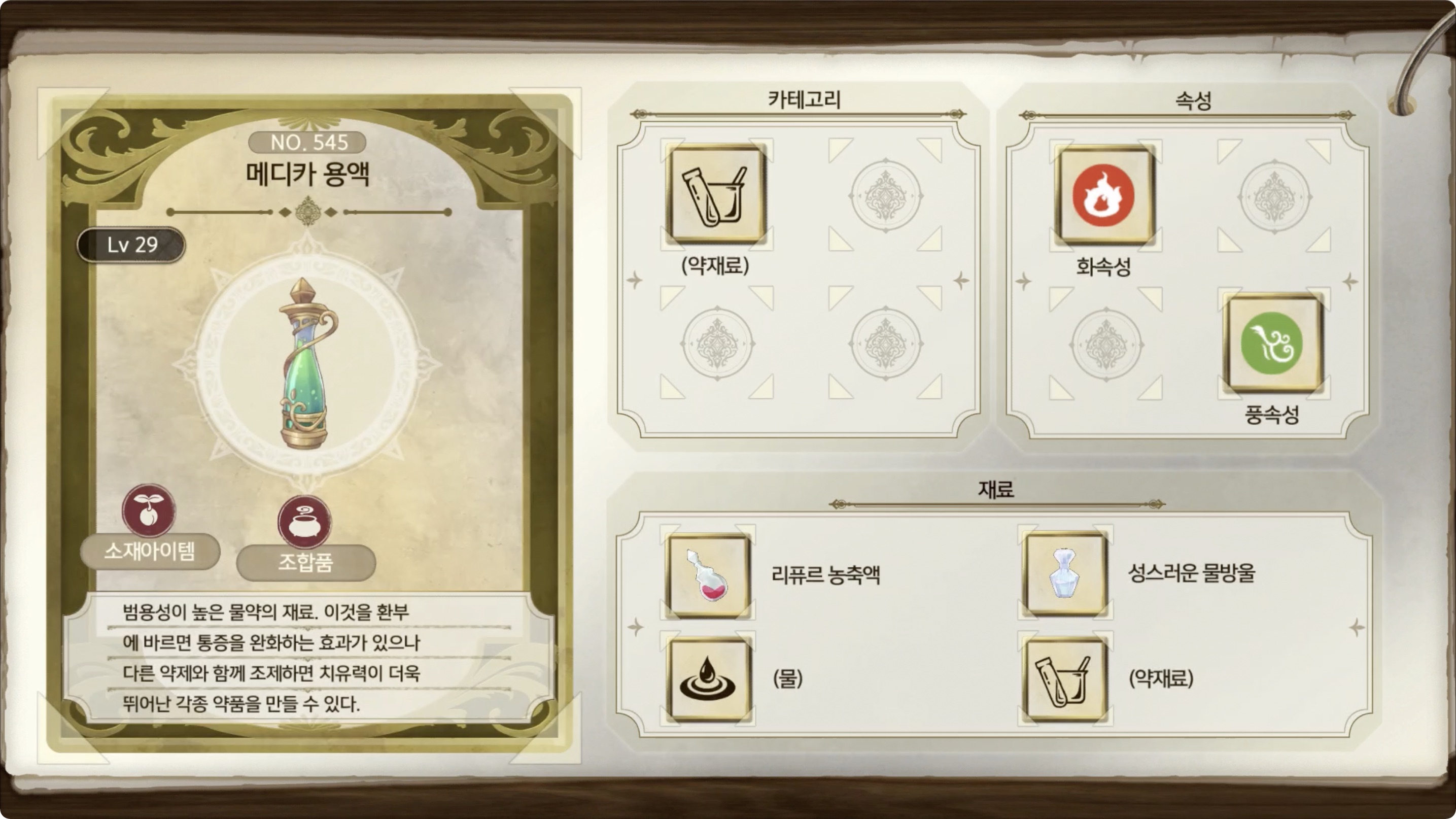 라이자의 아틀리에 2 - 아이템 도감 NO.545 메디카 용액