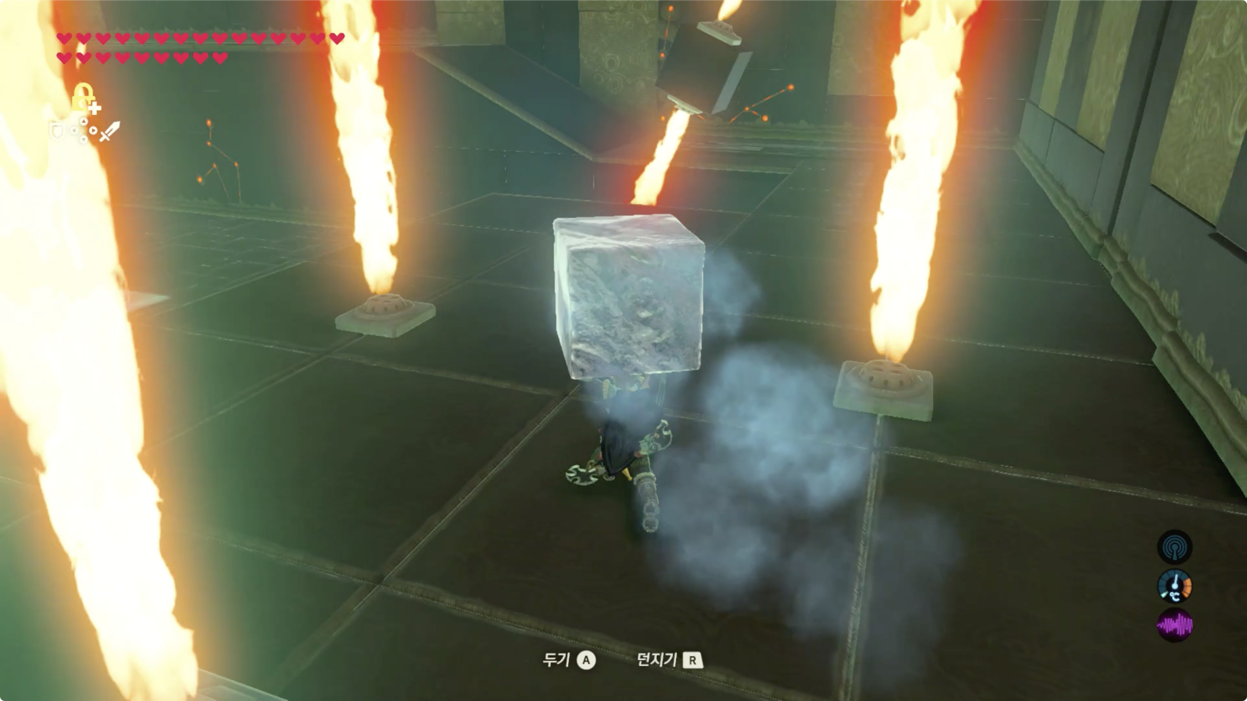 얼음을 보냈으면 링크는 철상자를 우산처럼 머리위에 올리고 지나가자.