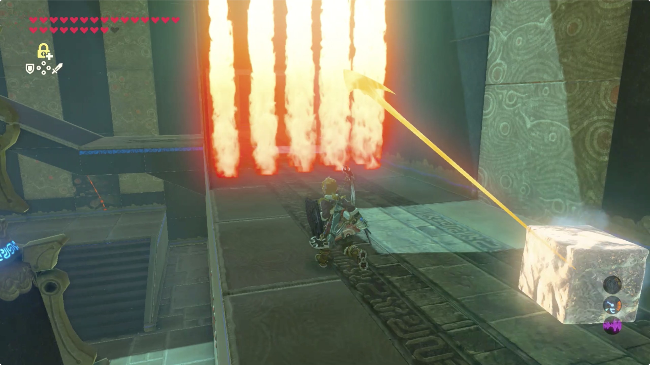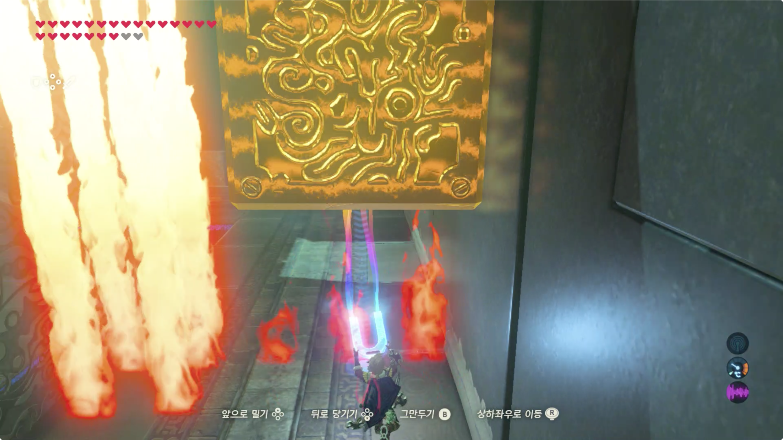 다음은 불기둥이 세로로 배치되어 있는데 철 상자로 막고 여유롭게 지나가면 된다.