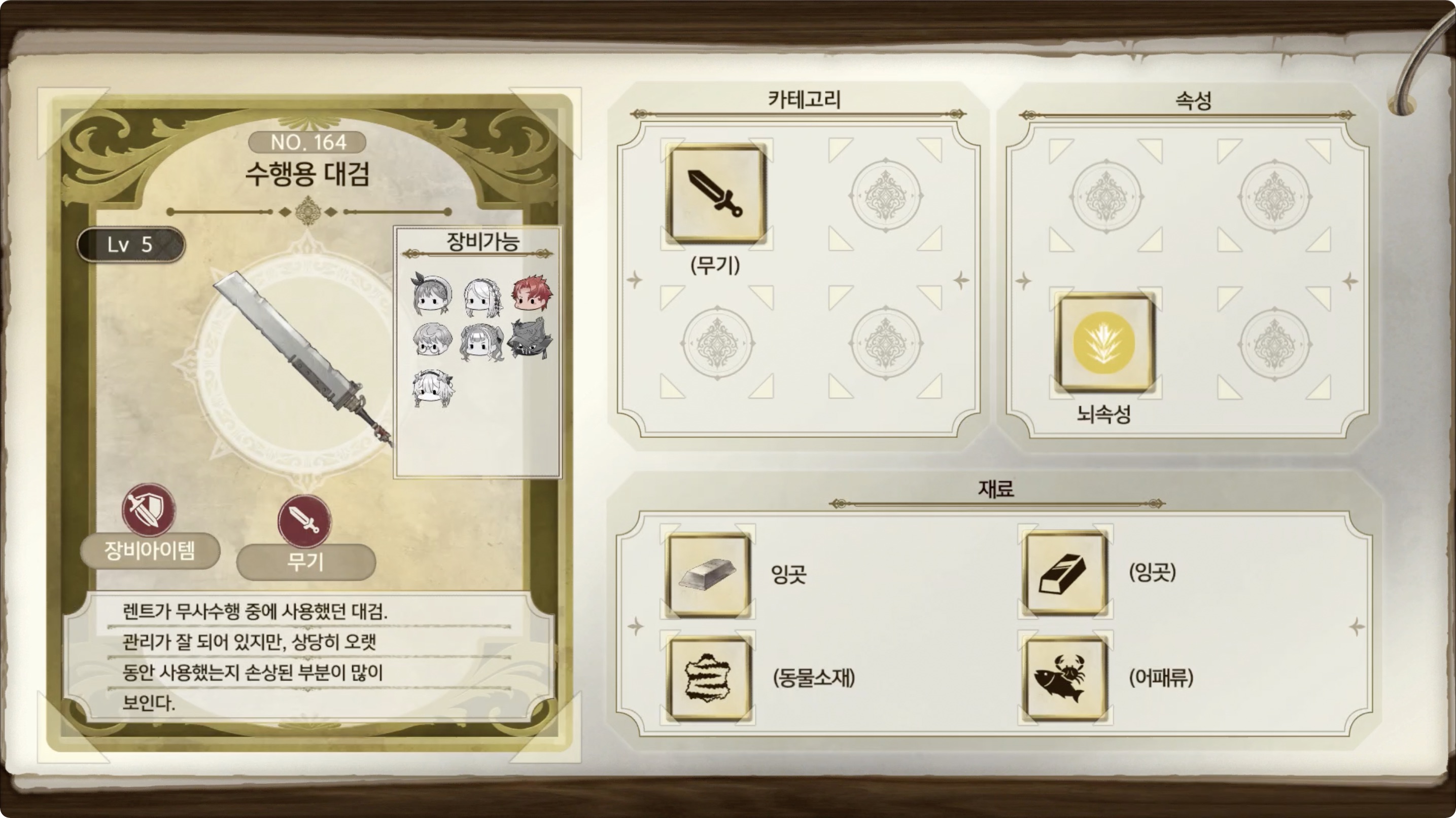 라이자의 아틀리에 2 - 아이템 도감 NO.164 수행용 대검