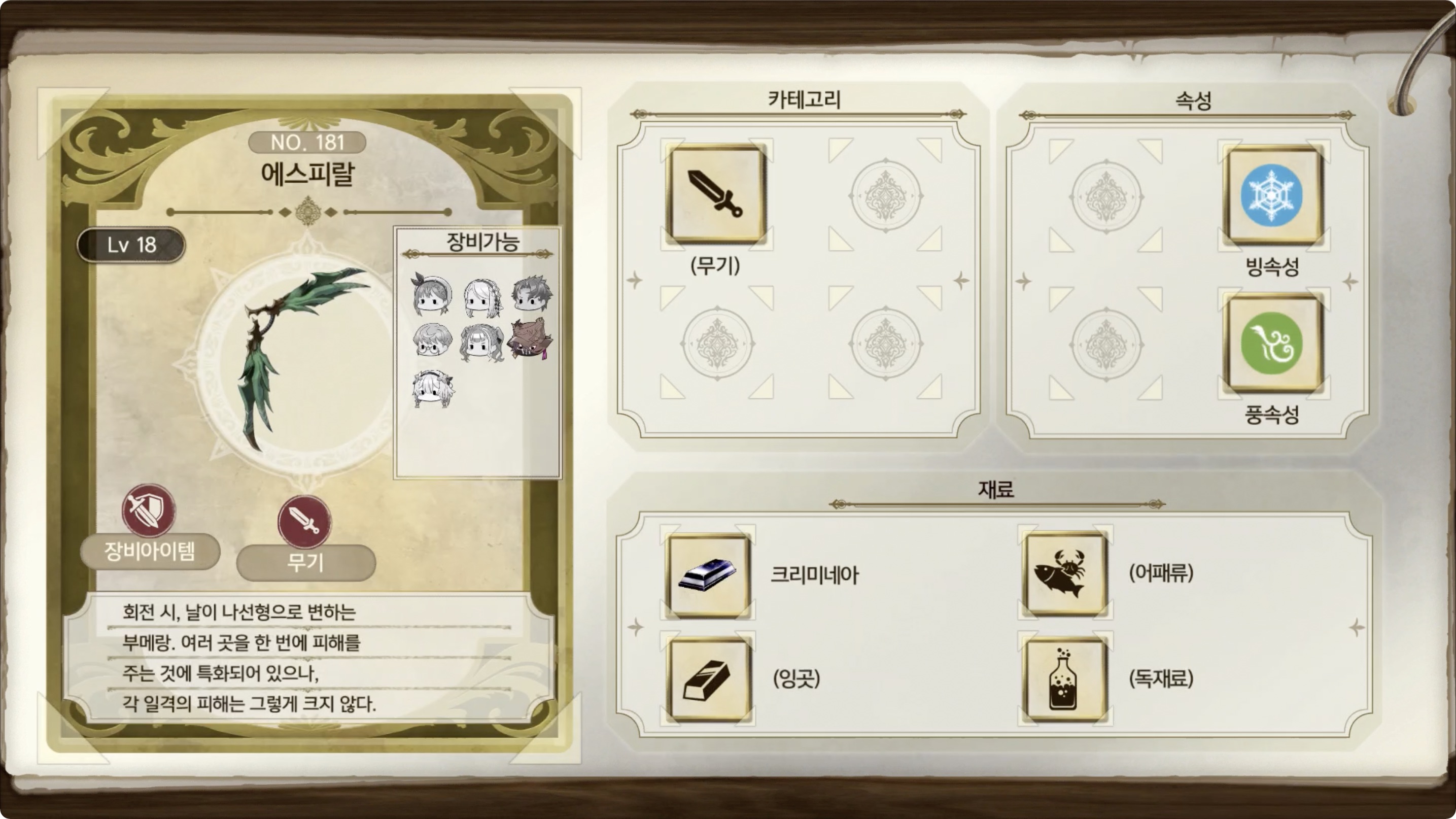 속성 : 빙속성, 풍속성