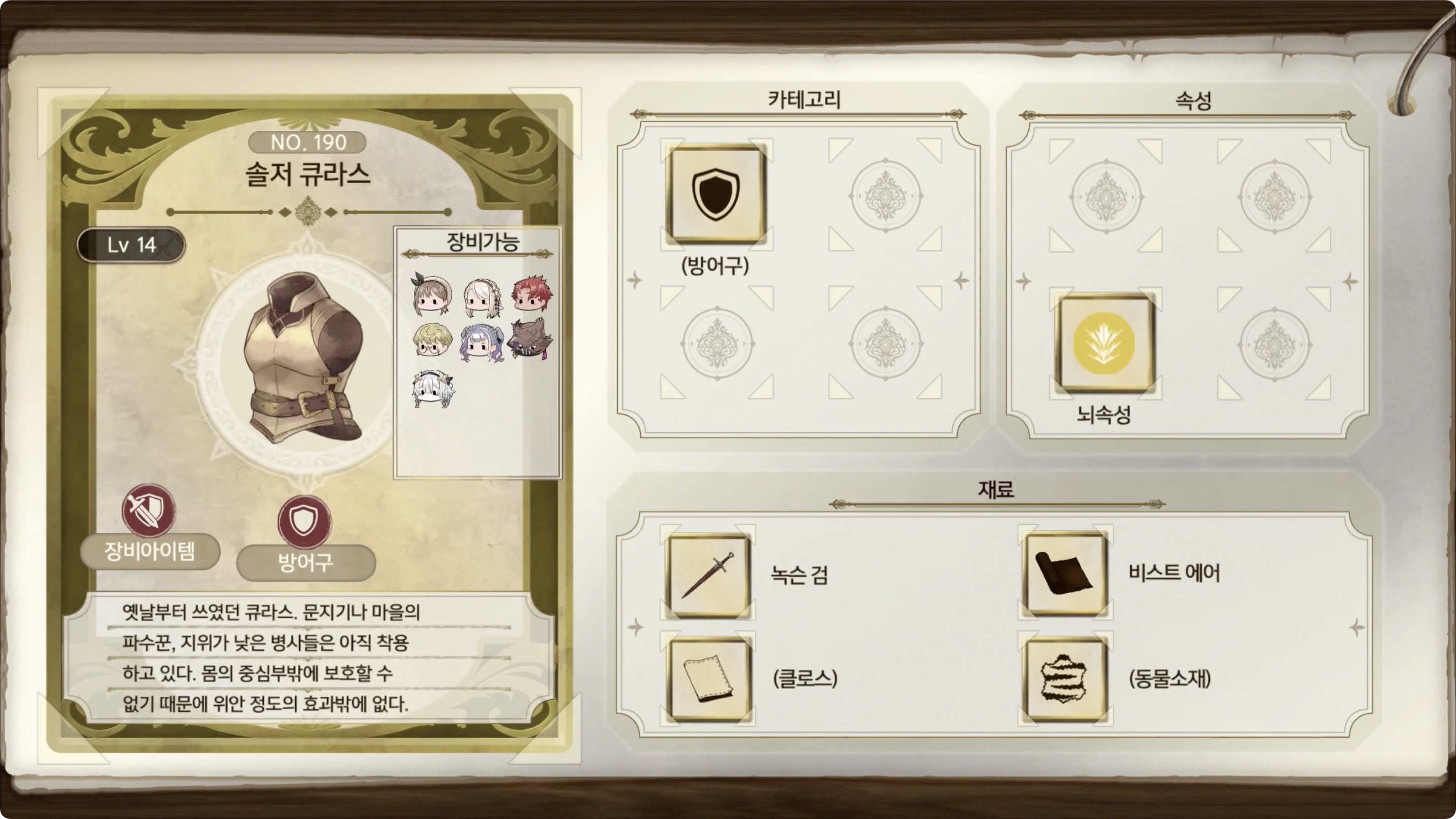 라이자의 아틀리에 2 - 아이템 도감 NO.190 솔저 큐라스