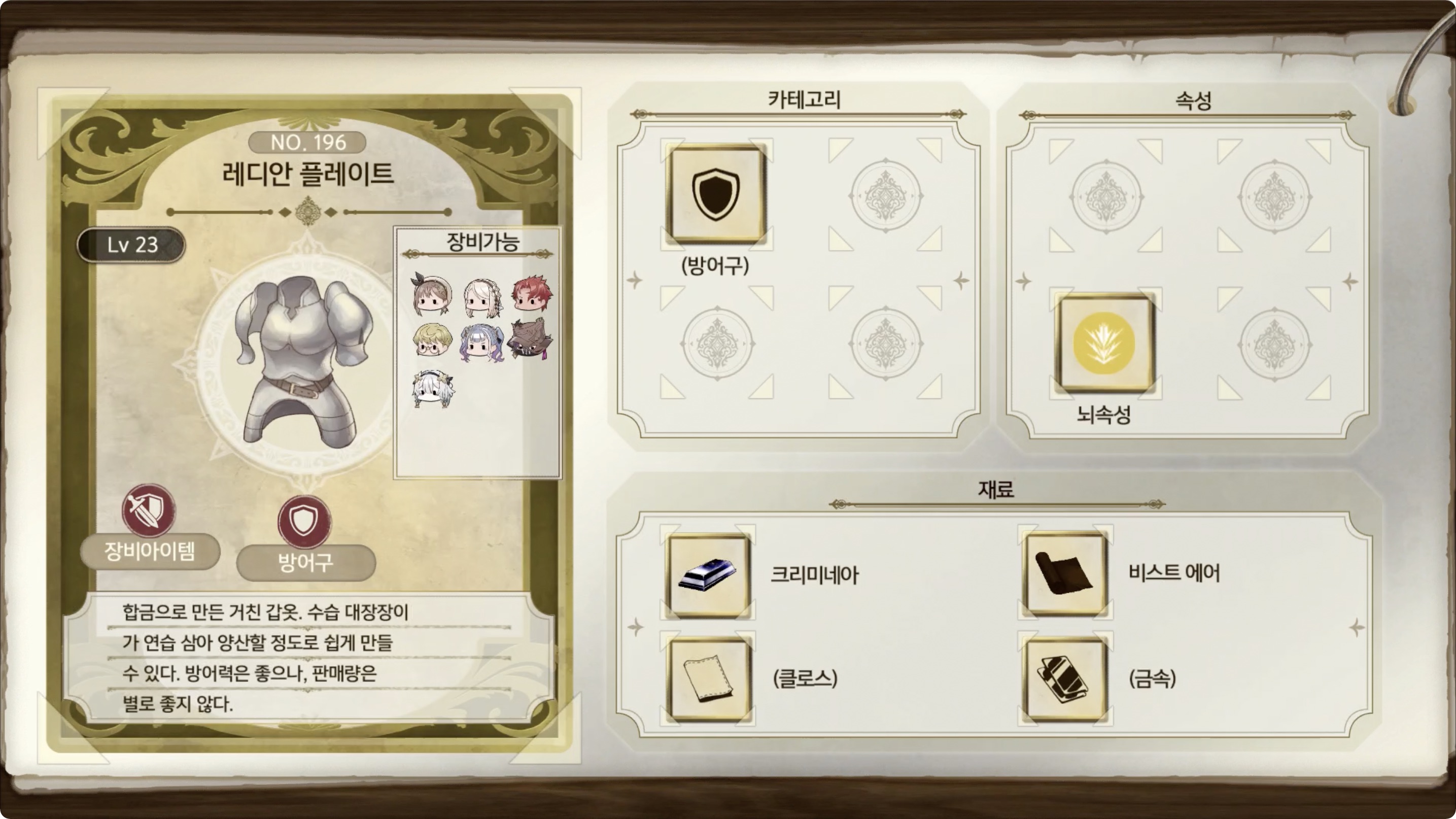 라이자의 아틀리에 2 - 아이템 도감 NO.196 레디안 플레이트