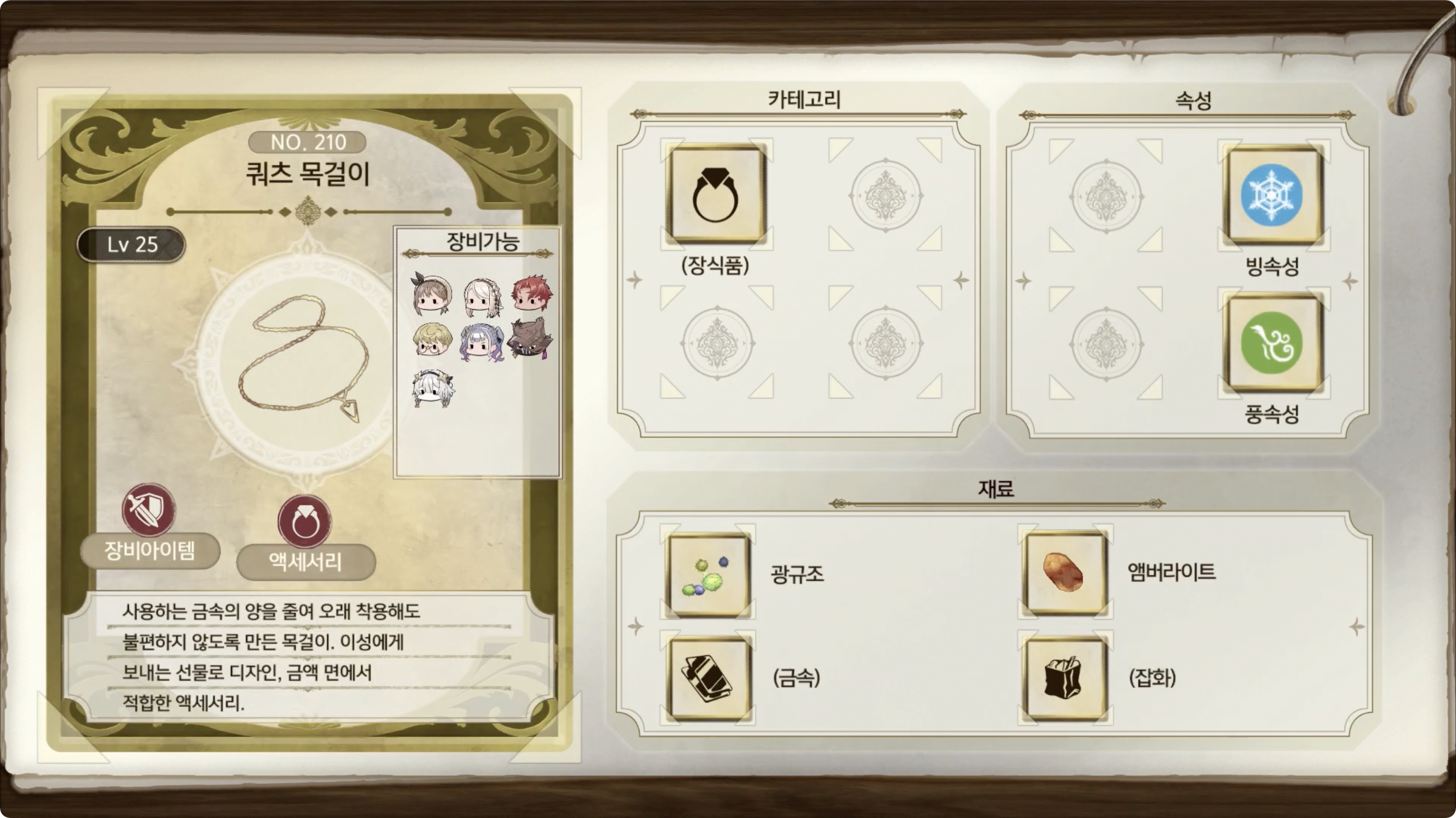 라이자의 아틀리에 2 - 아이템 도감 NO.210 쿼츠 목걸이