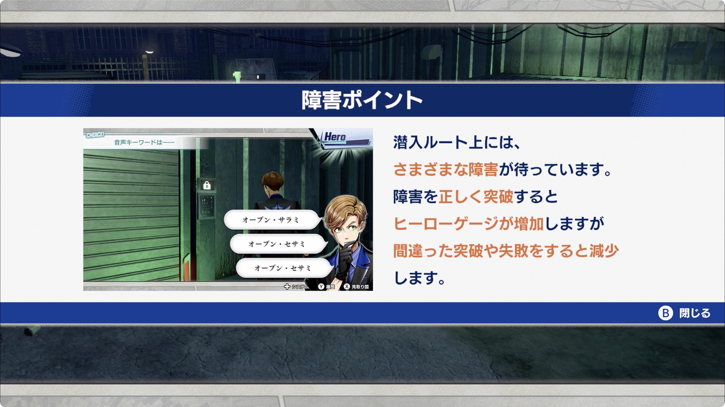 • 중앙의 방으로 그냥 진행하면 '이대로 잠입하기엔 위험하다'고 하기때문에 いったん戻ろう(일단 돌아간다)를 선택.