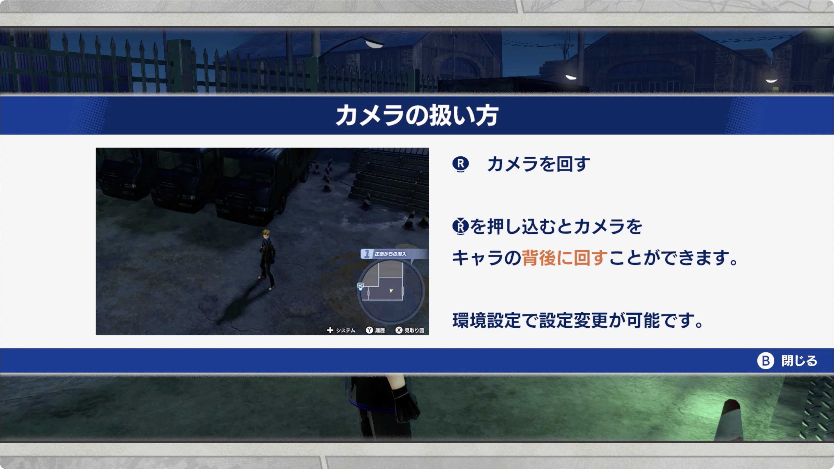 [R 스틱]을 누르면 카메라를 캐릭터의 뒤로 되돌릴 수 있습니다.