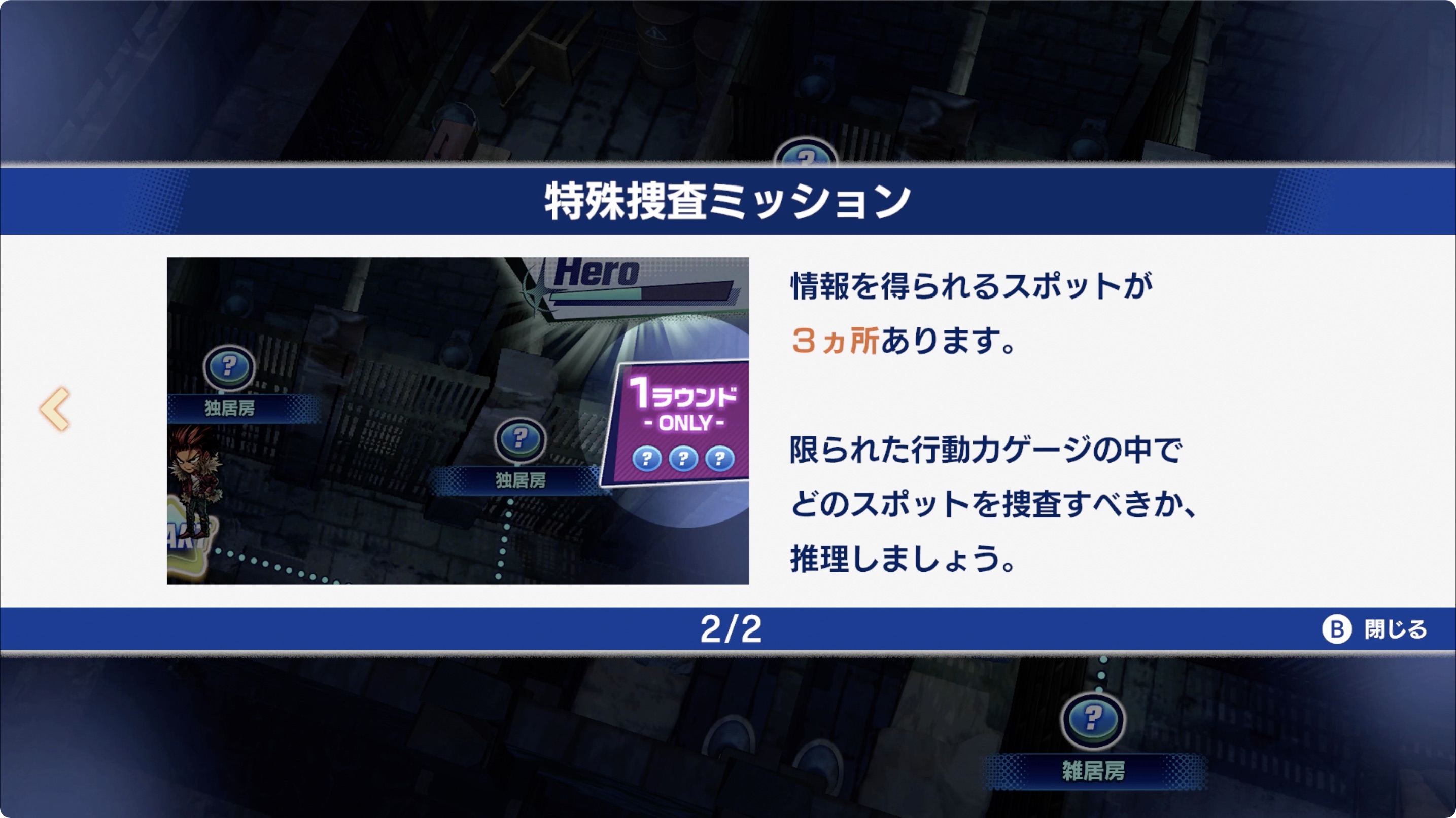 한정된 행동력 게이지로 어떠한 장소를 수사할 것인지, 추리해 봅시다.