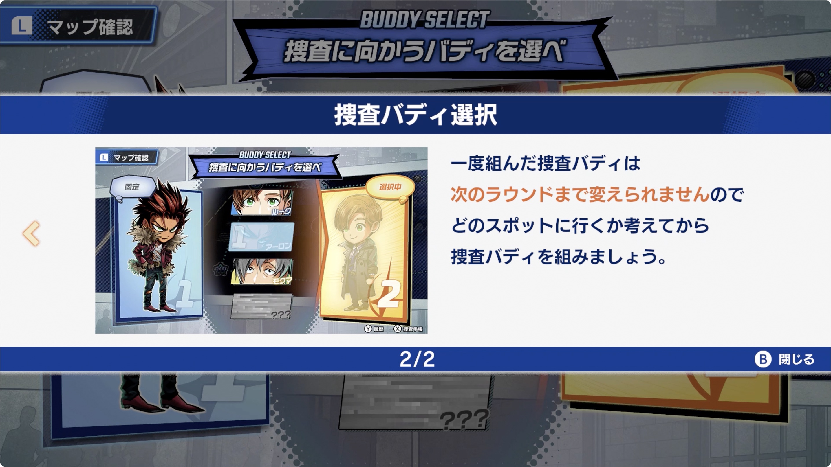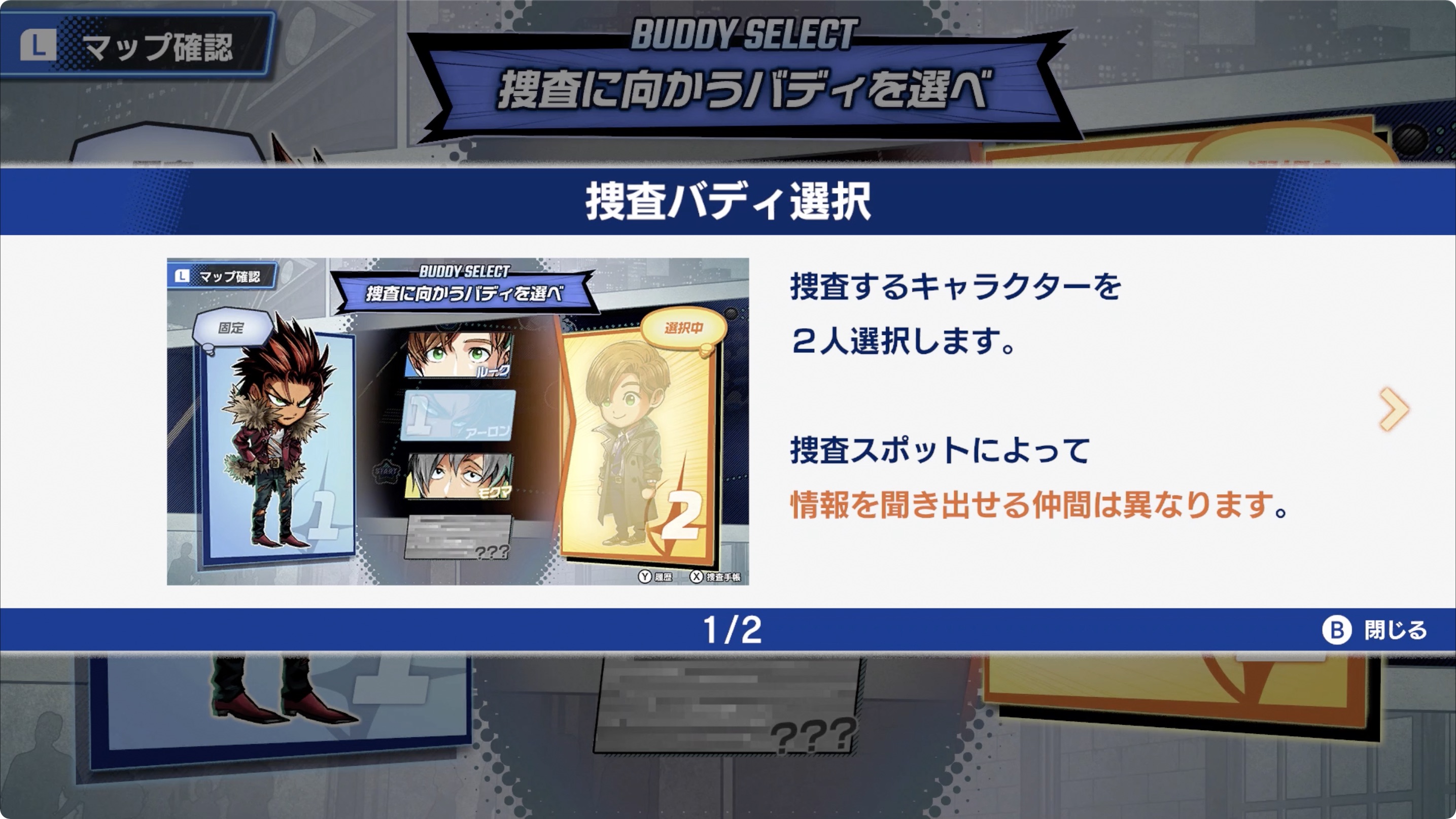 어떤 스폿에 갈 것인지 생각한 후 수사 버디를 편성해 봅시다.