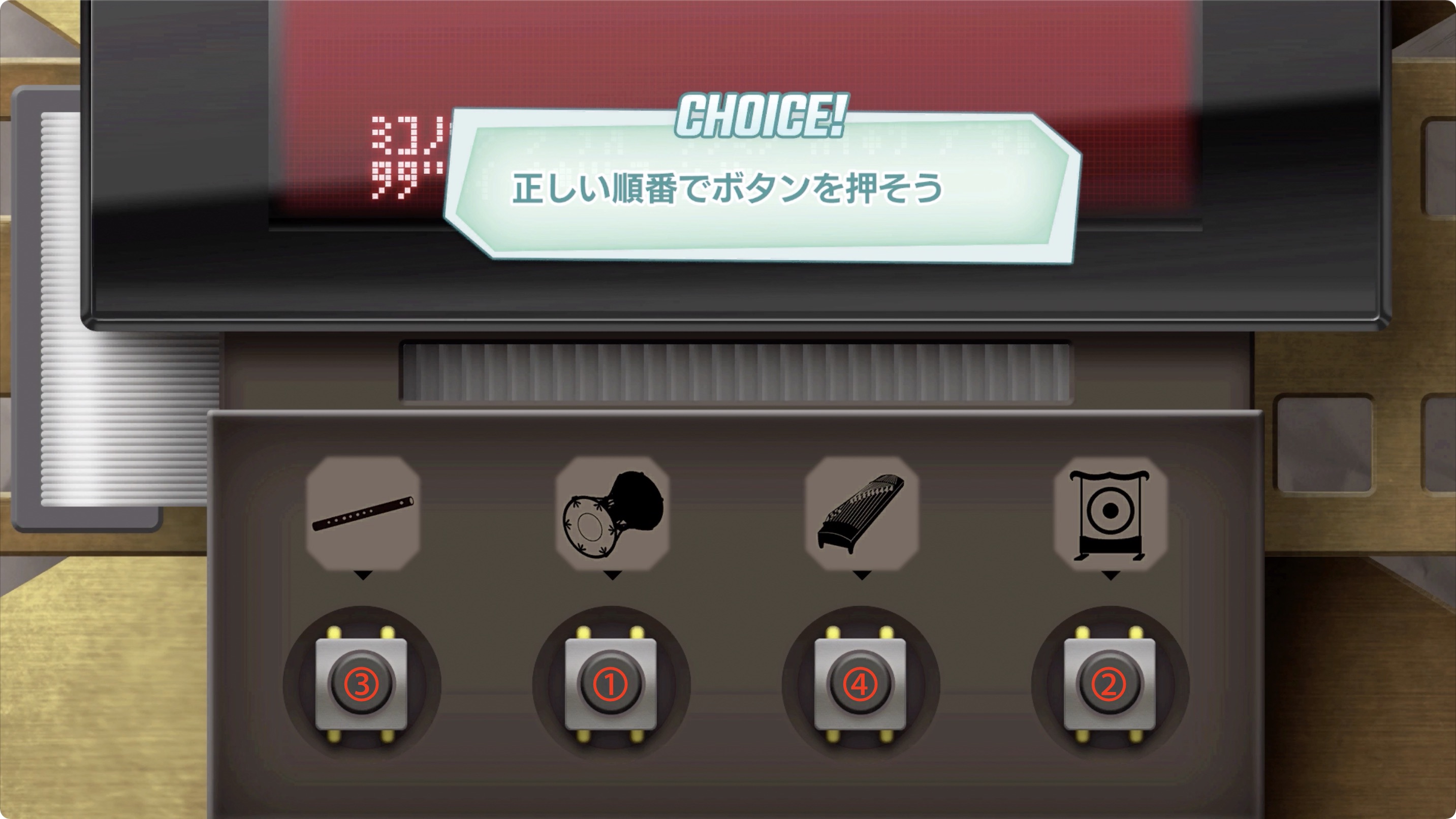 ▶︎ 鼓(북), 鉦(징), 笛(피리), 箏(쟁)의 순서대로 입력