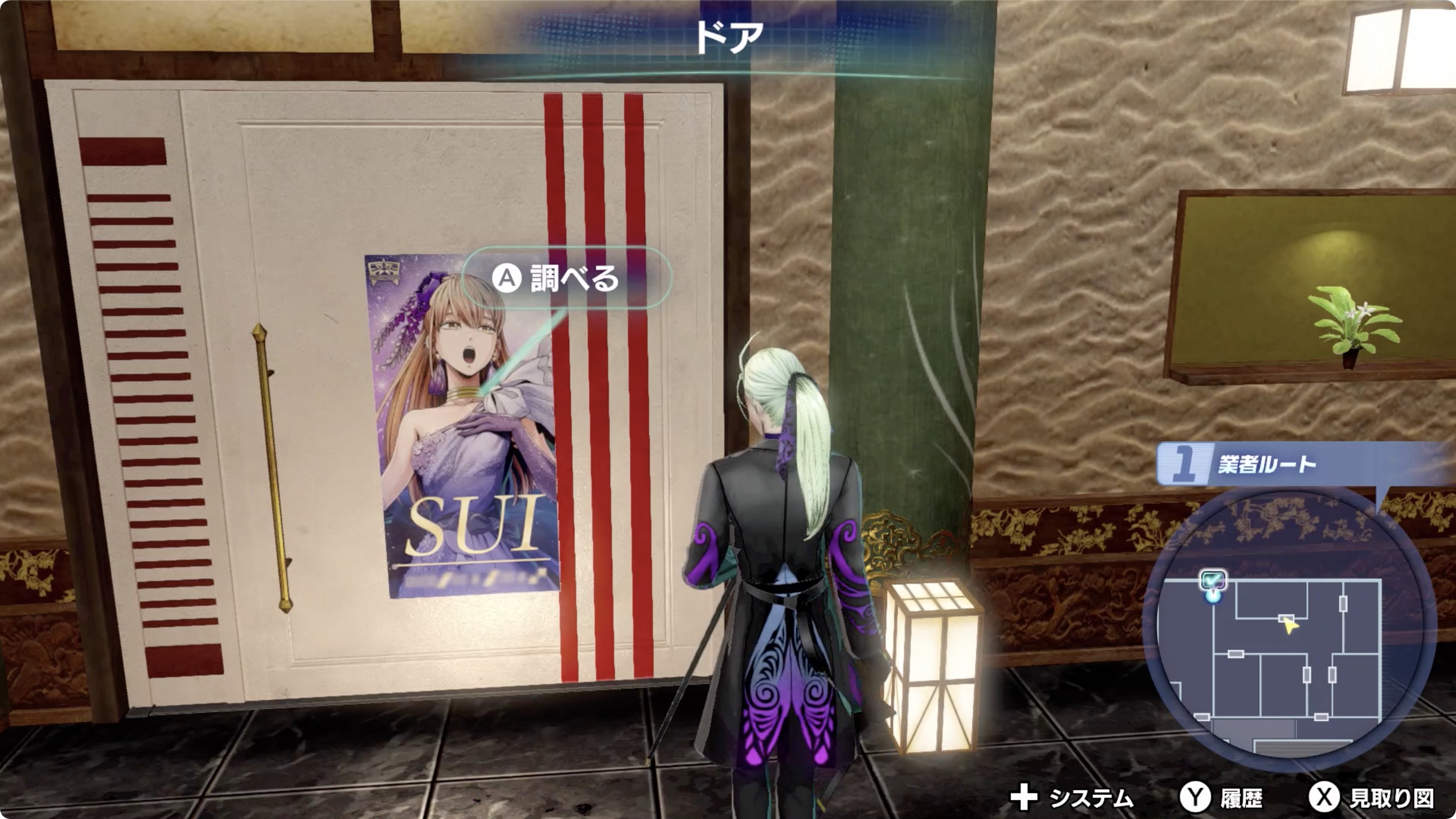 • 북쪽의 스이의 포스터가 있는 방으로 들어갑니다. 방에서 着ぐるみ(인형)을 조사한 후 다시 길을 따라 이동