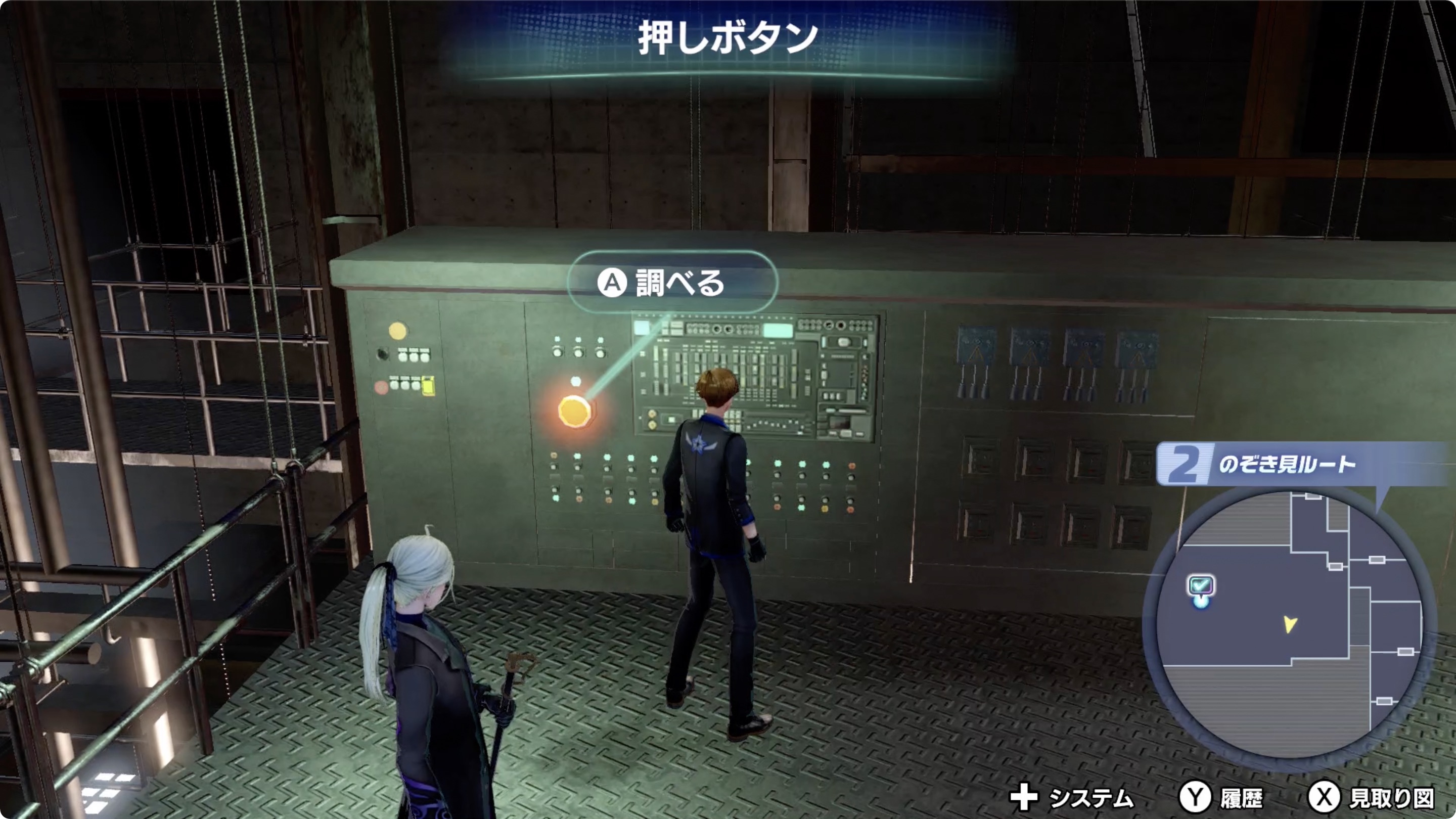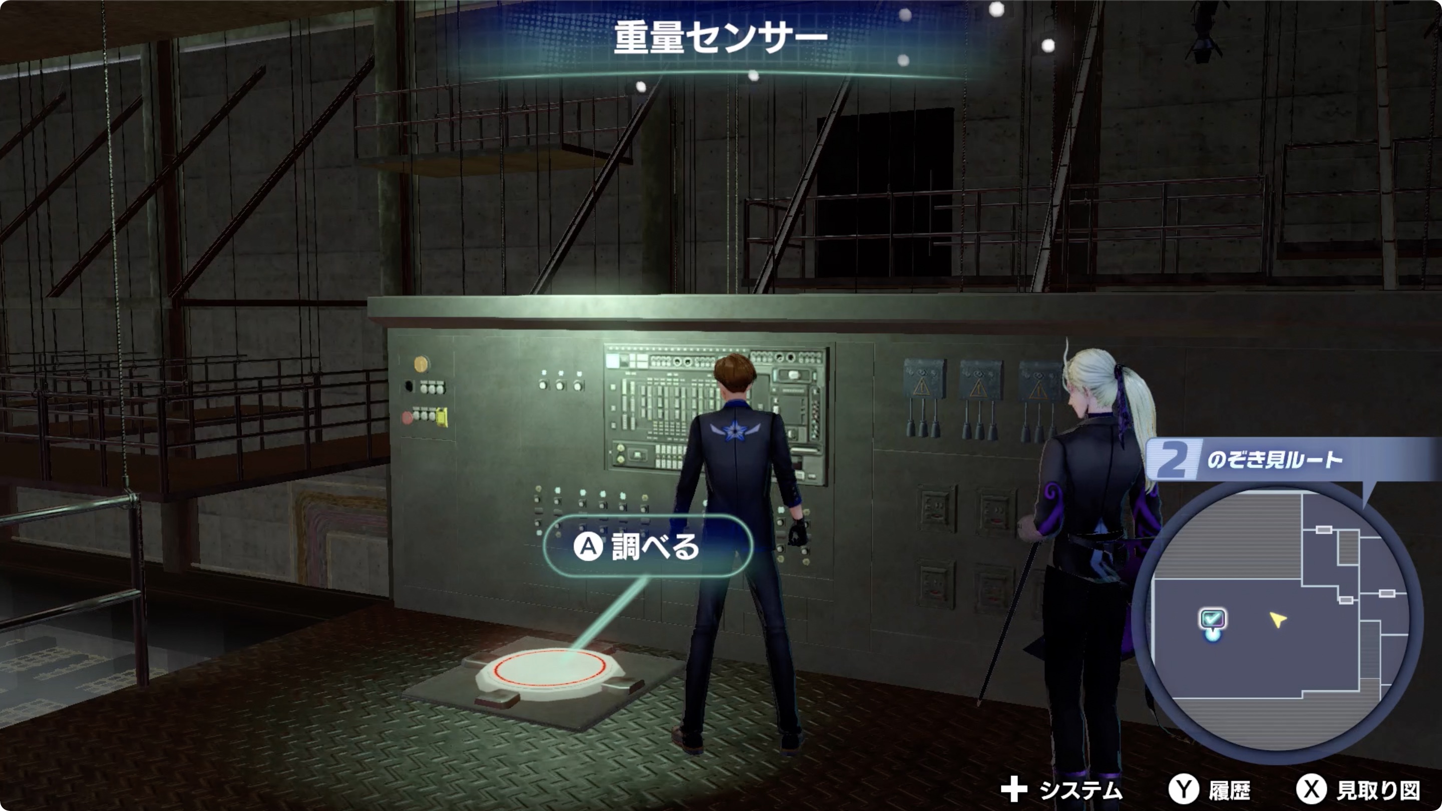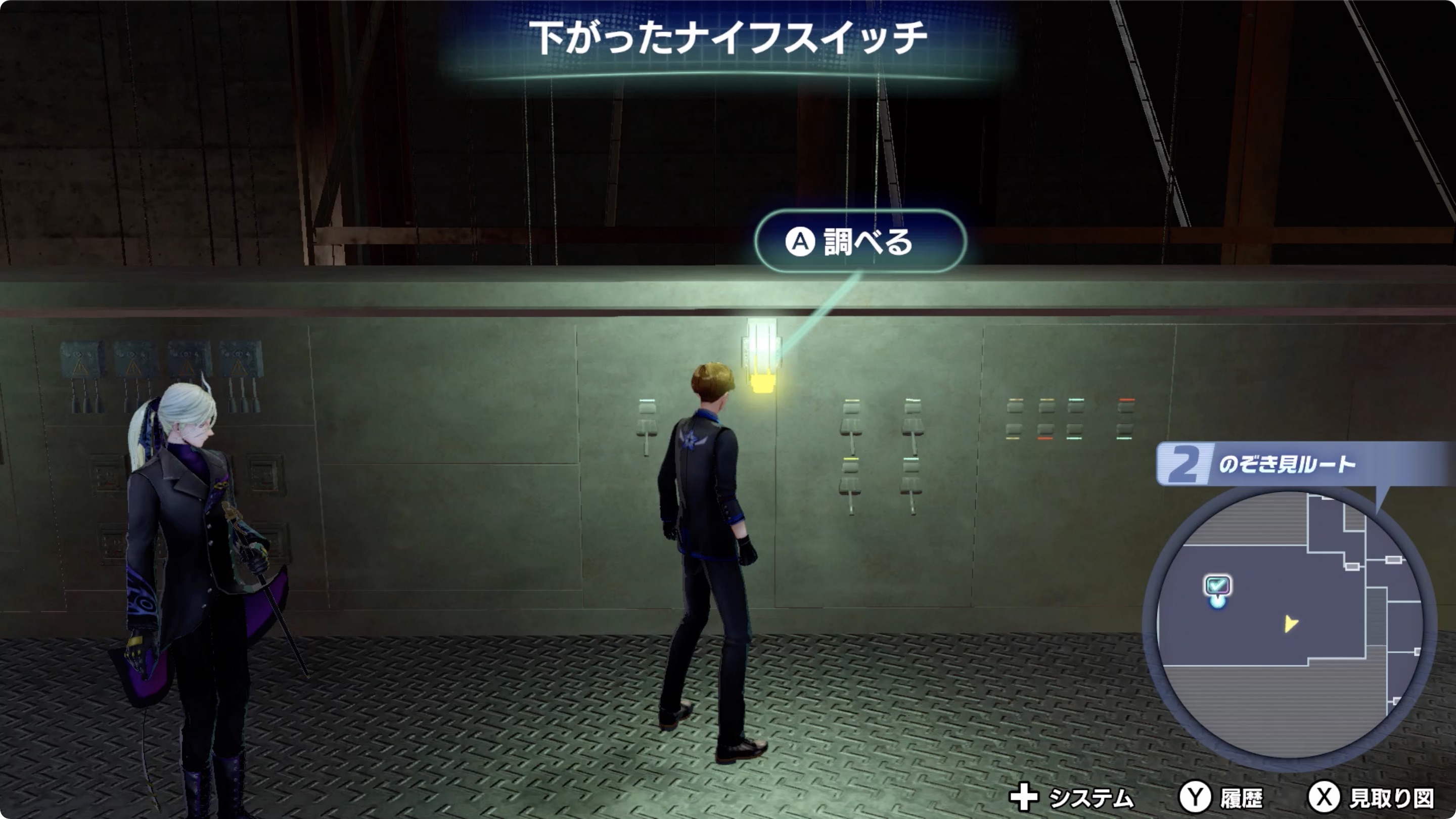 • 캣워크로 나가 좌우에 2개씩 4개의 장치를 押しボタン(누르는 버튼) > 下がったナイフスイッチ(아래로 내려간 나이프 스위치) > 上がったレバー(위로 올라간 레버) > 重量センサー(중력 센서)를 순서대로 작동 시킨다