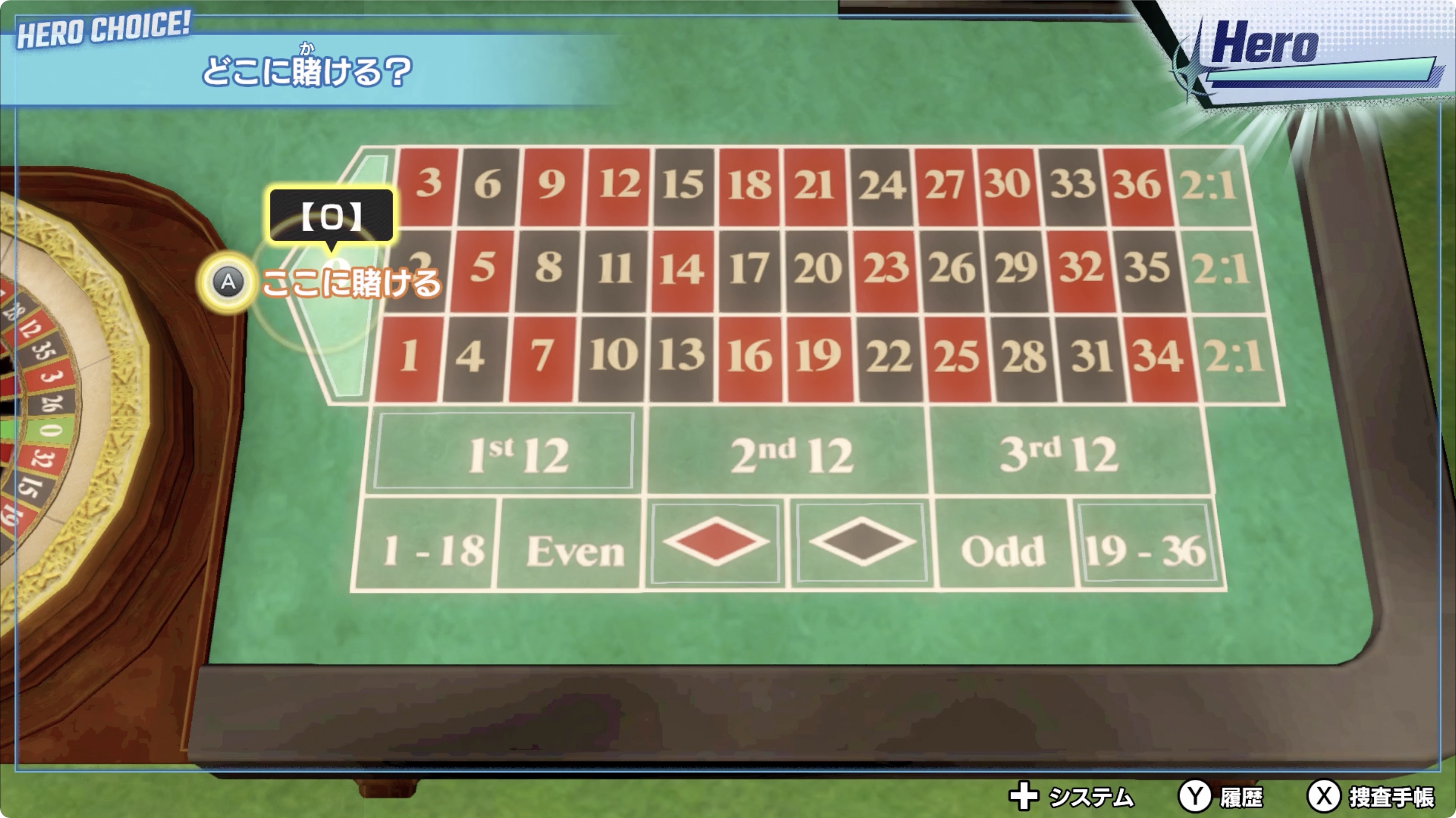 • 룰렛의 방에선 [0]에 건다.