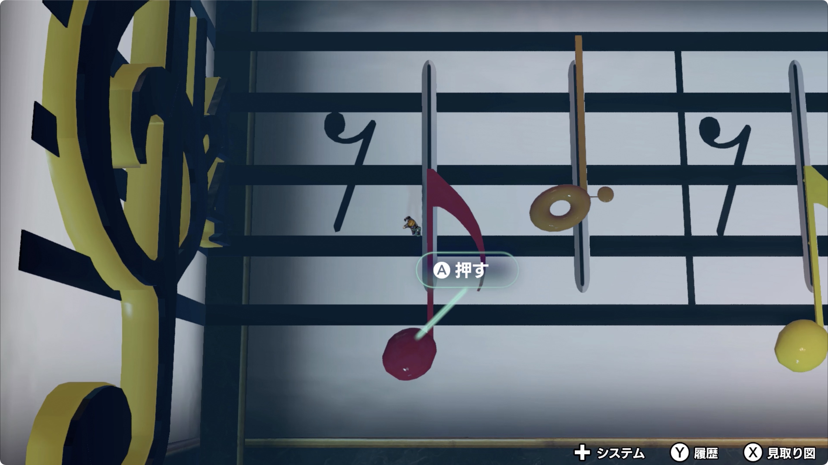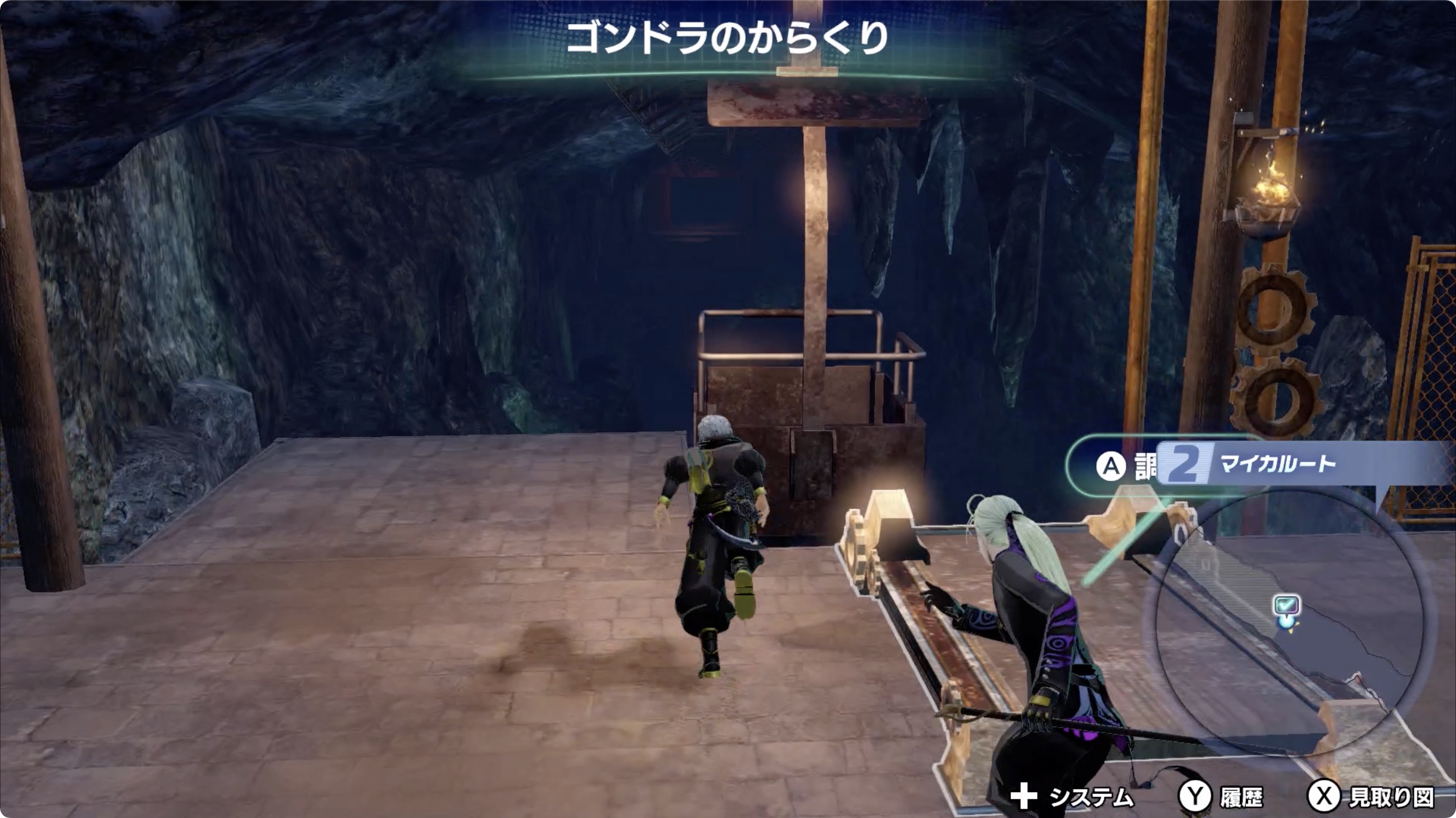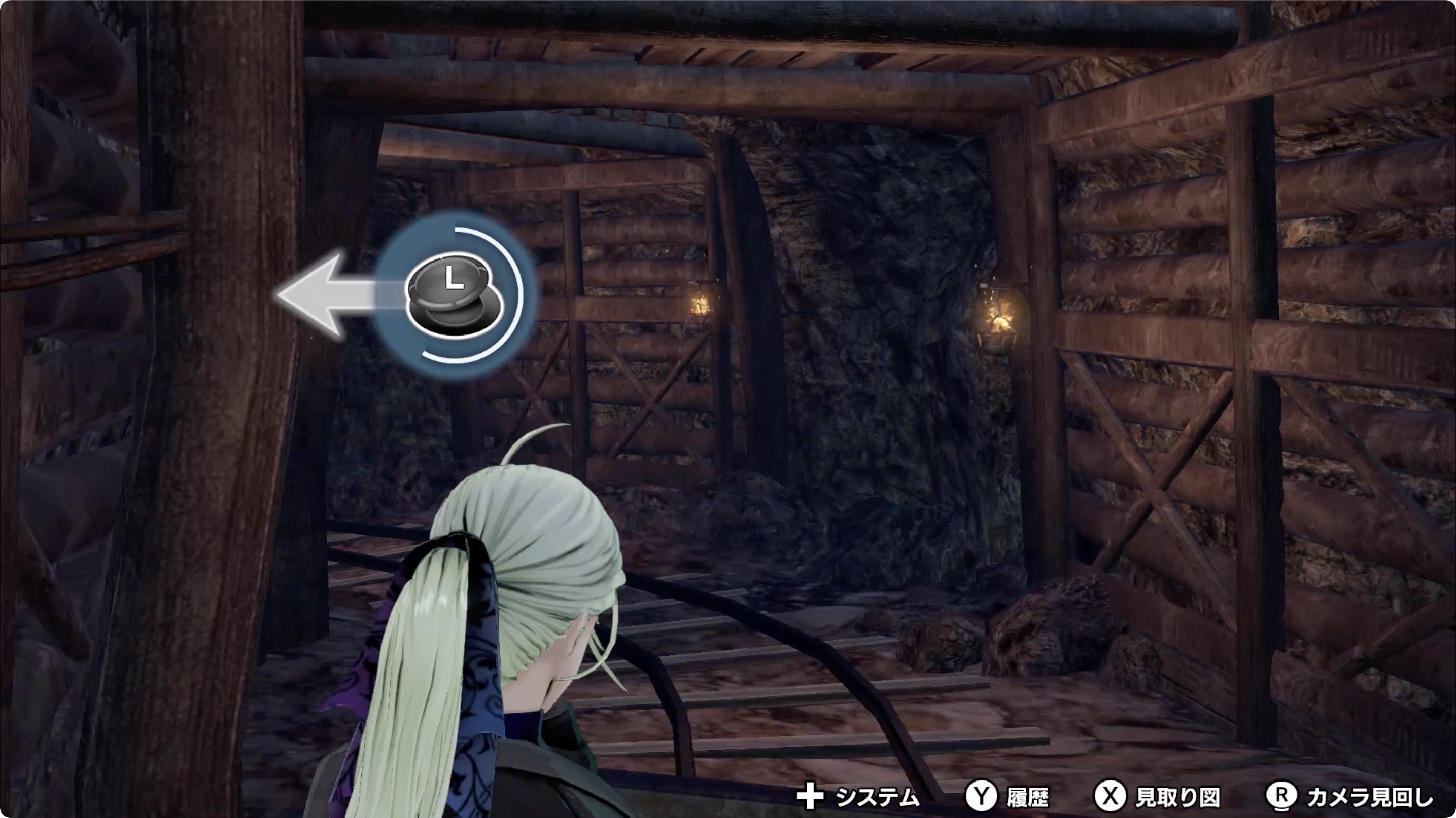 • 레버를 위와 같이 순서대로 [오른쪽, 오른쪽, 왼쪽, 오른쪽, 오른쪽]으로 조작한 후, 열차에 탄다.