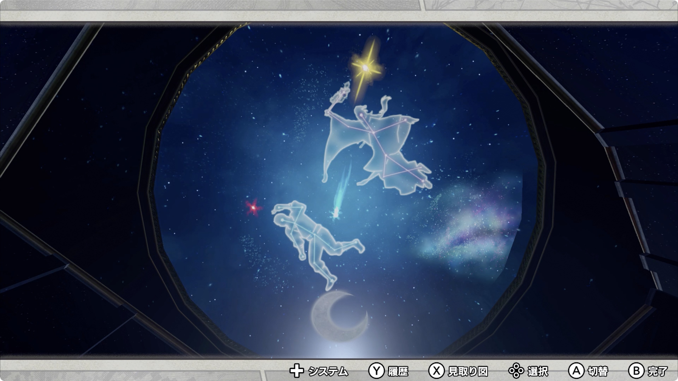 • 오른쪽에 있는 望遠鏡(망원경)을 조사하여 다음 3지점을 확인한다.
