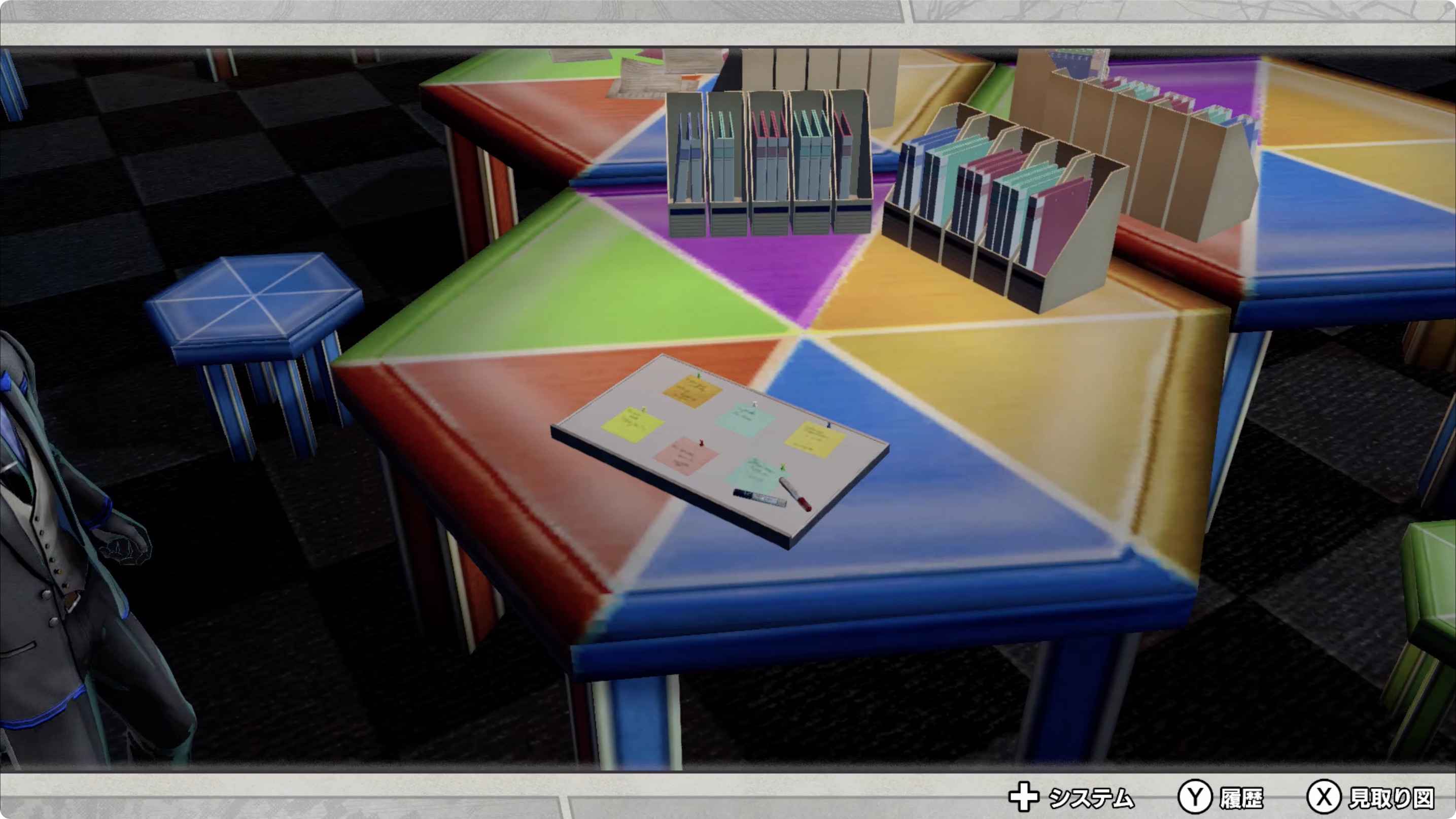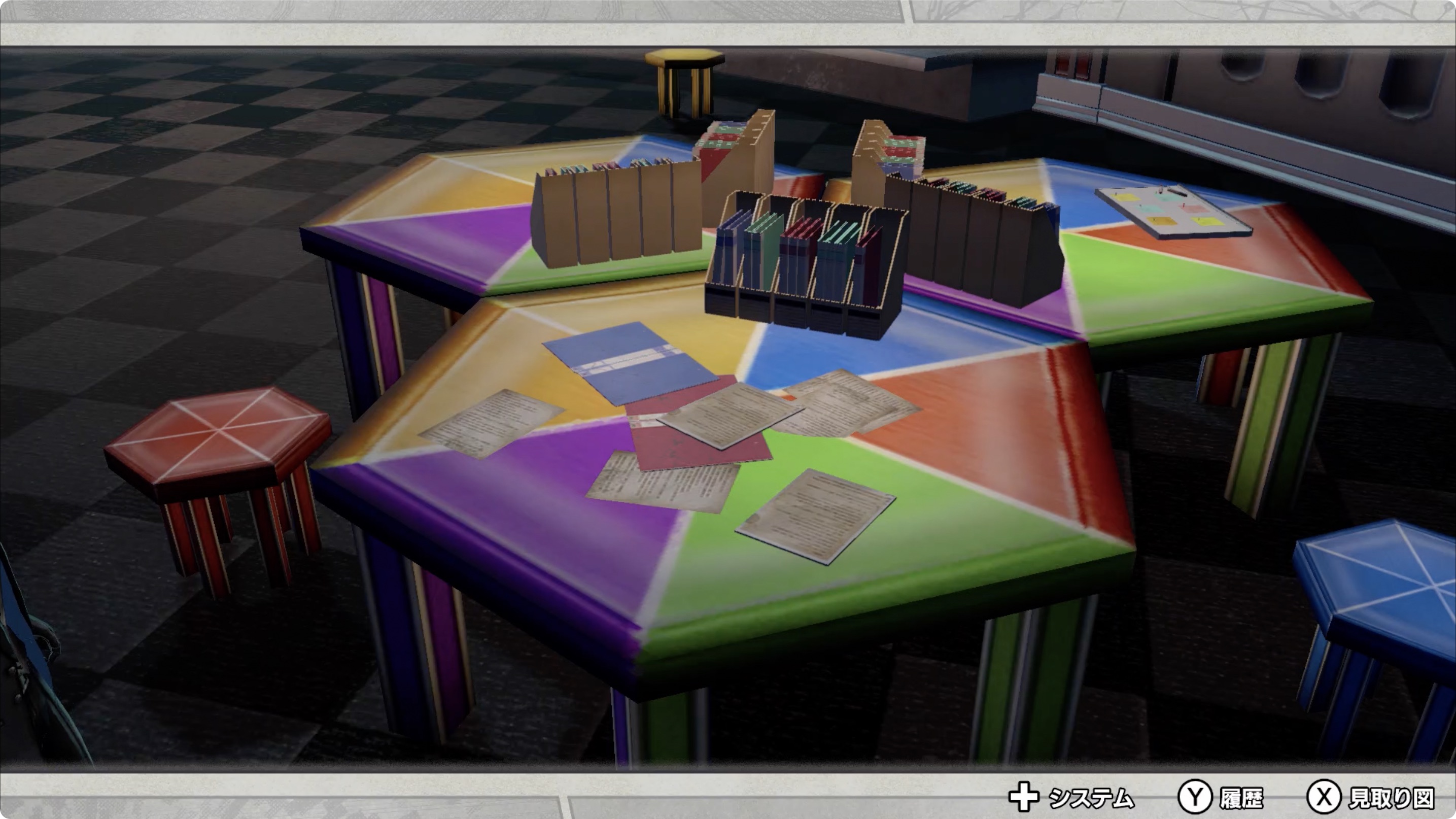 • 중앙관리실의 책상위에있는 書類(서류), 메모, 벽의 종이, 감시카메라 등을 모두 조사하다보면 이벤트 발생