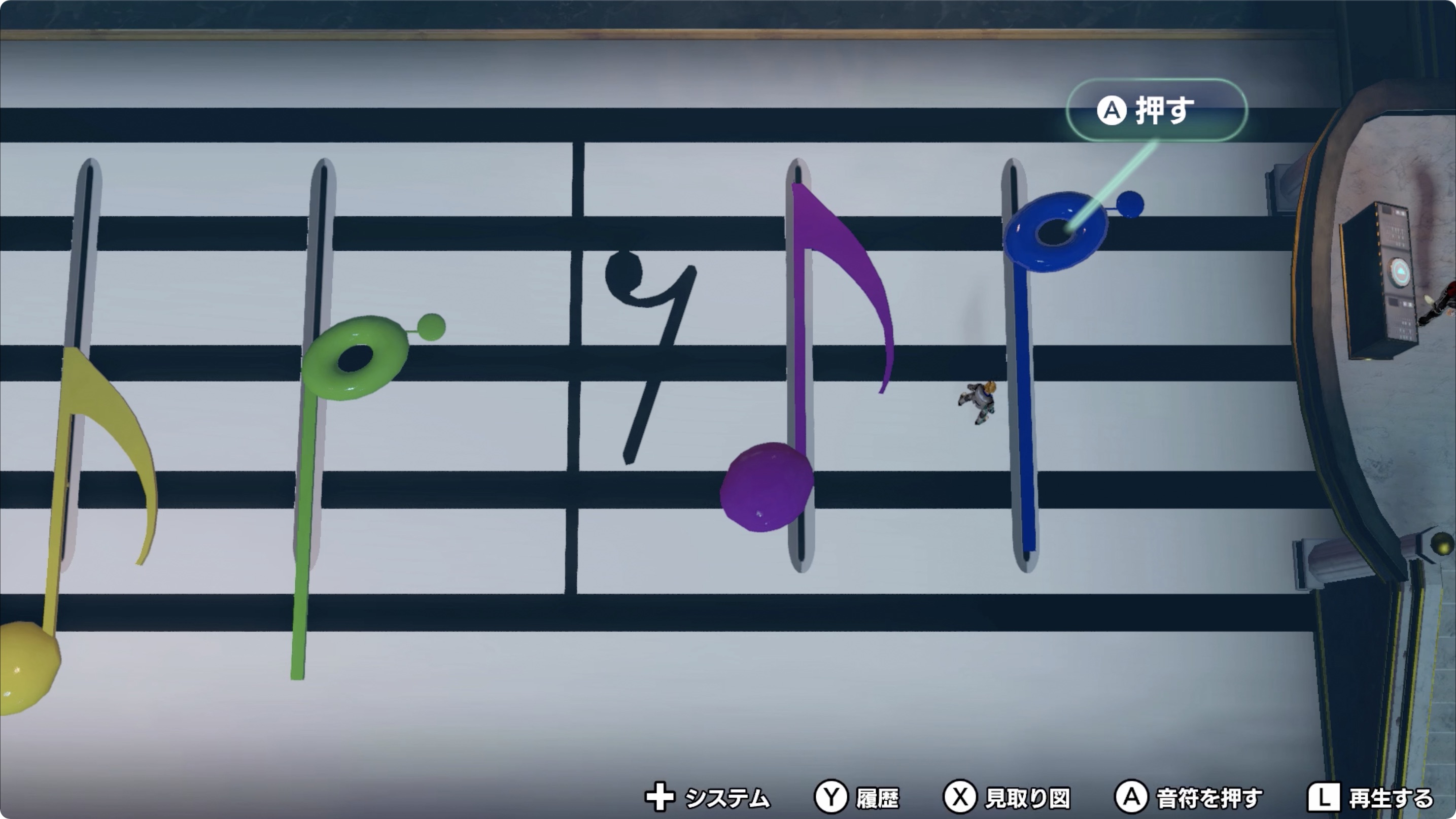 • 가장 왼쪽의 빨간색은 2칸 아래로, 가장 오른쪽의 파란색은 2칸 위로 이동시킨 후 [L 버튼]으로 재생한다