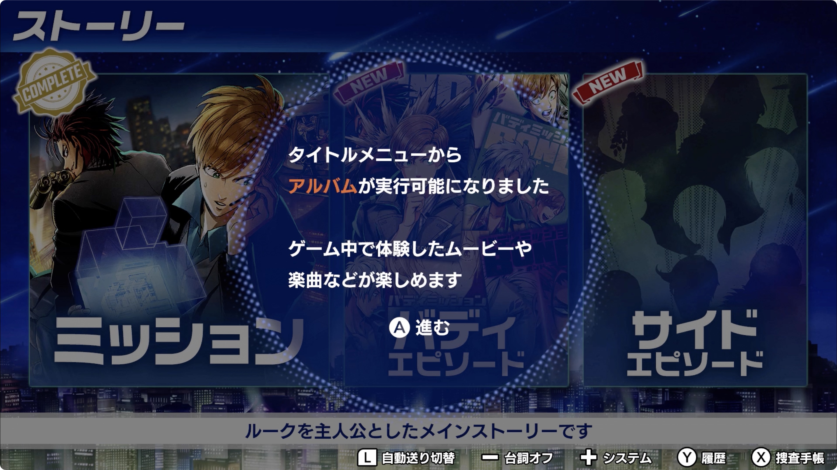 ① 메인 스토리를 클리어하게 되면 타이틀 메뉴에 アルバム(앨범)이 실행가능하게 됩니다.