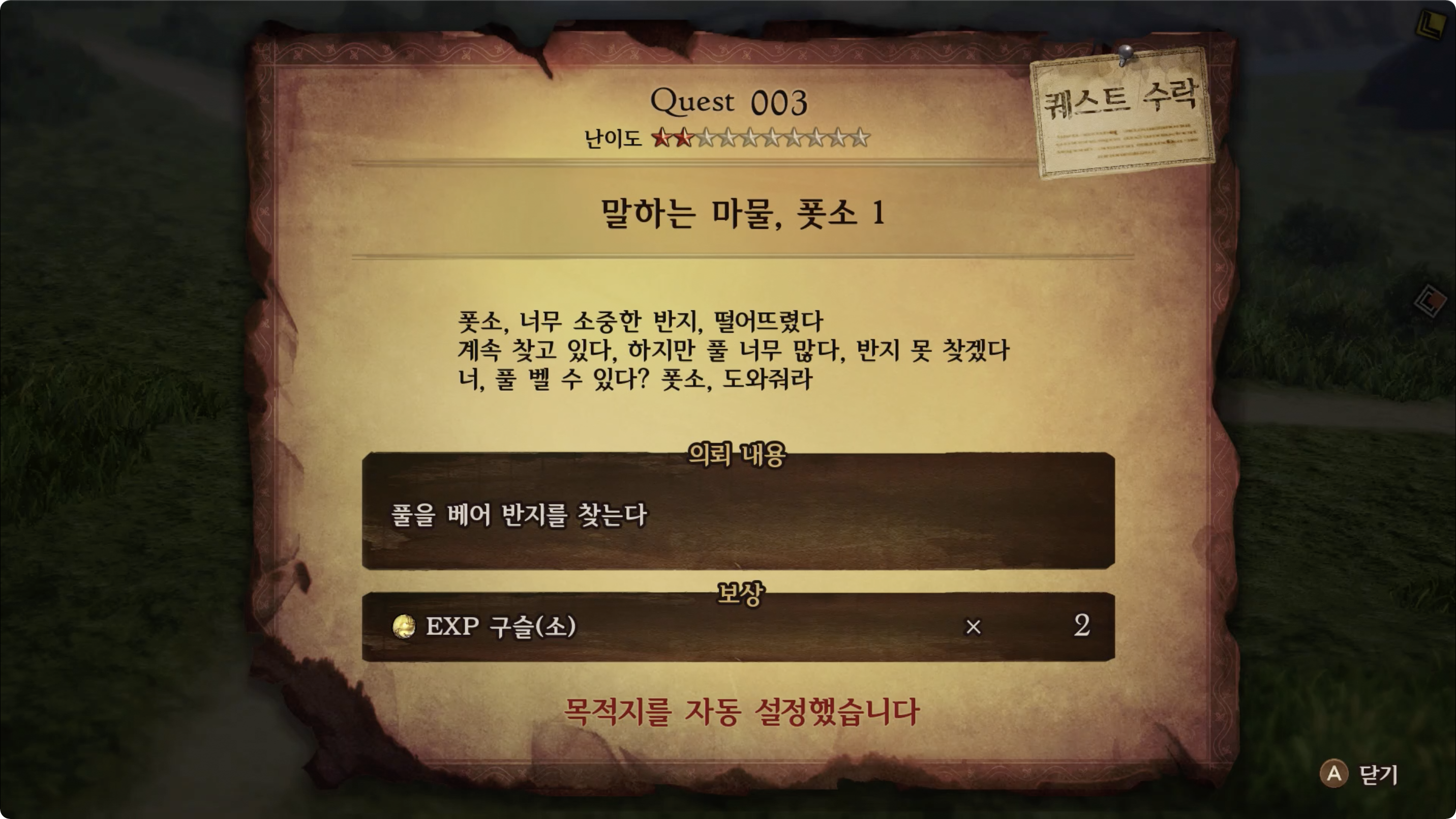 | 의뢰 내용 | 풀을 베어 반지를 찾는다 |