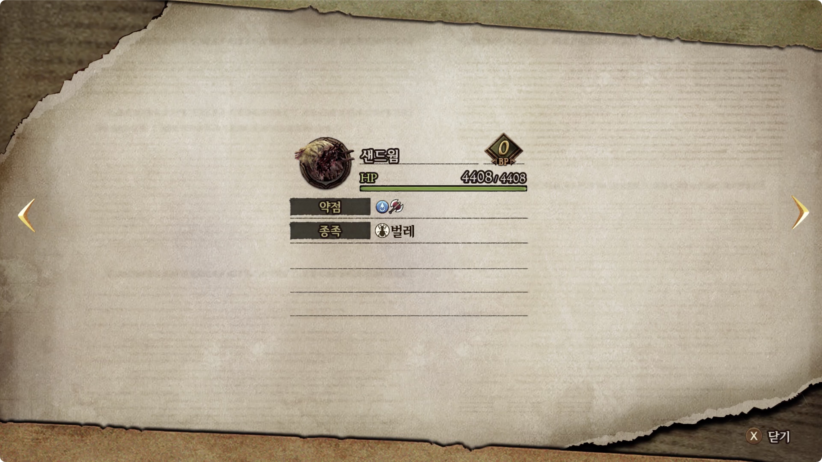 | 의뢰 내용 | 샌드웜을 토벌한다 0/1 |