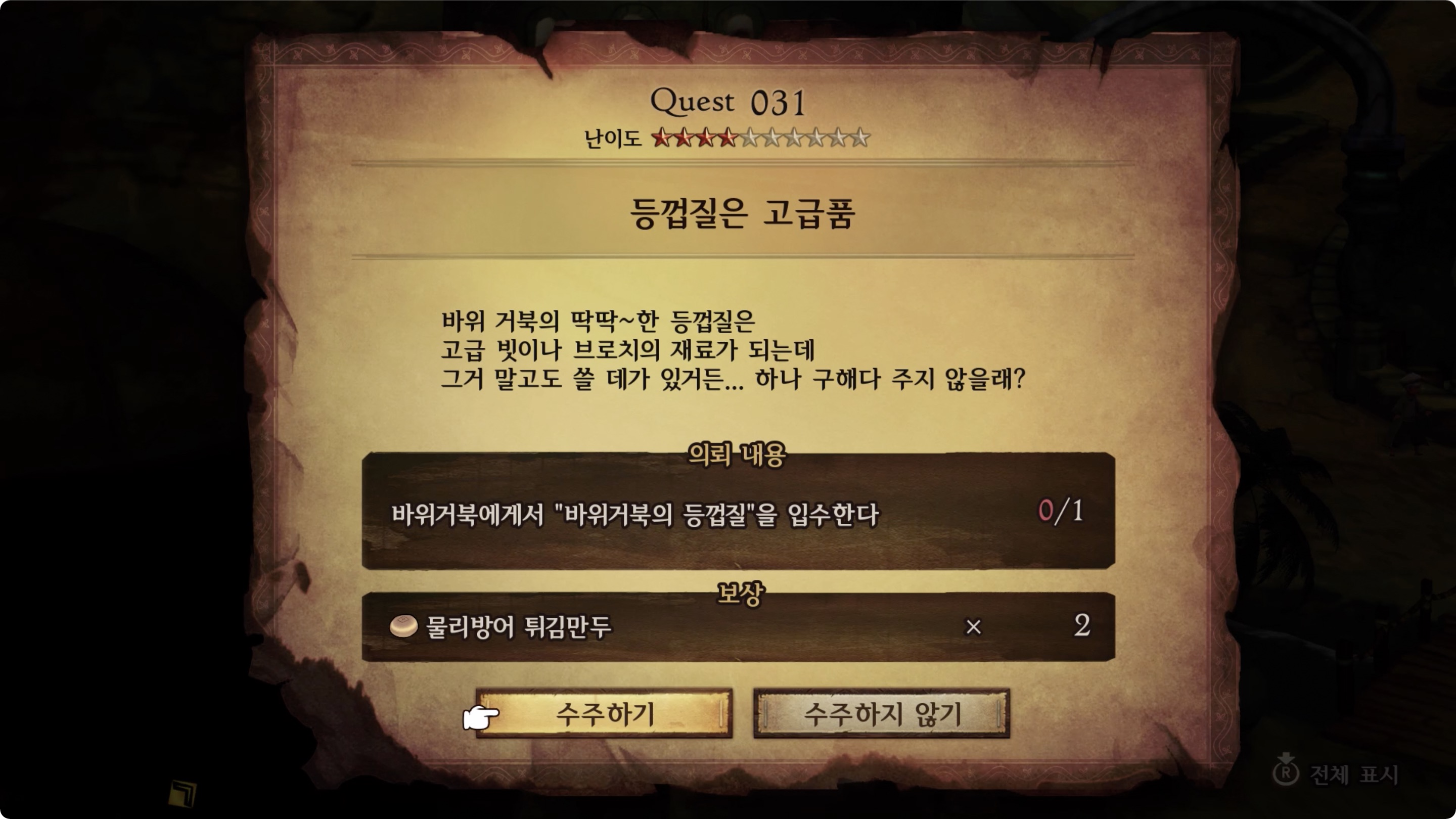 | 의뢰 내용 | 바위거북에게서 "바위거북의 등껍질"을 입수한다 0/1 |