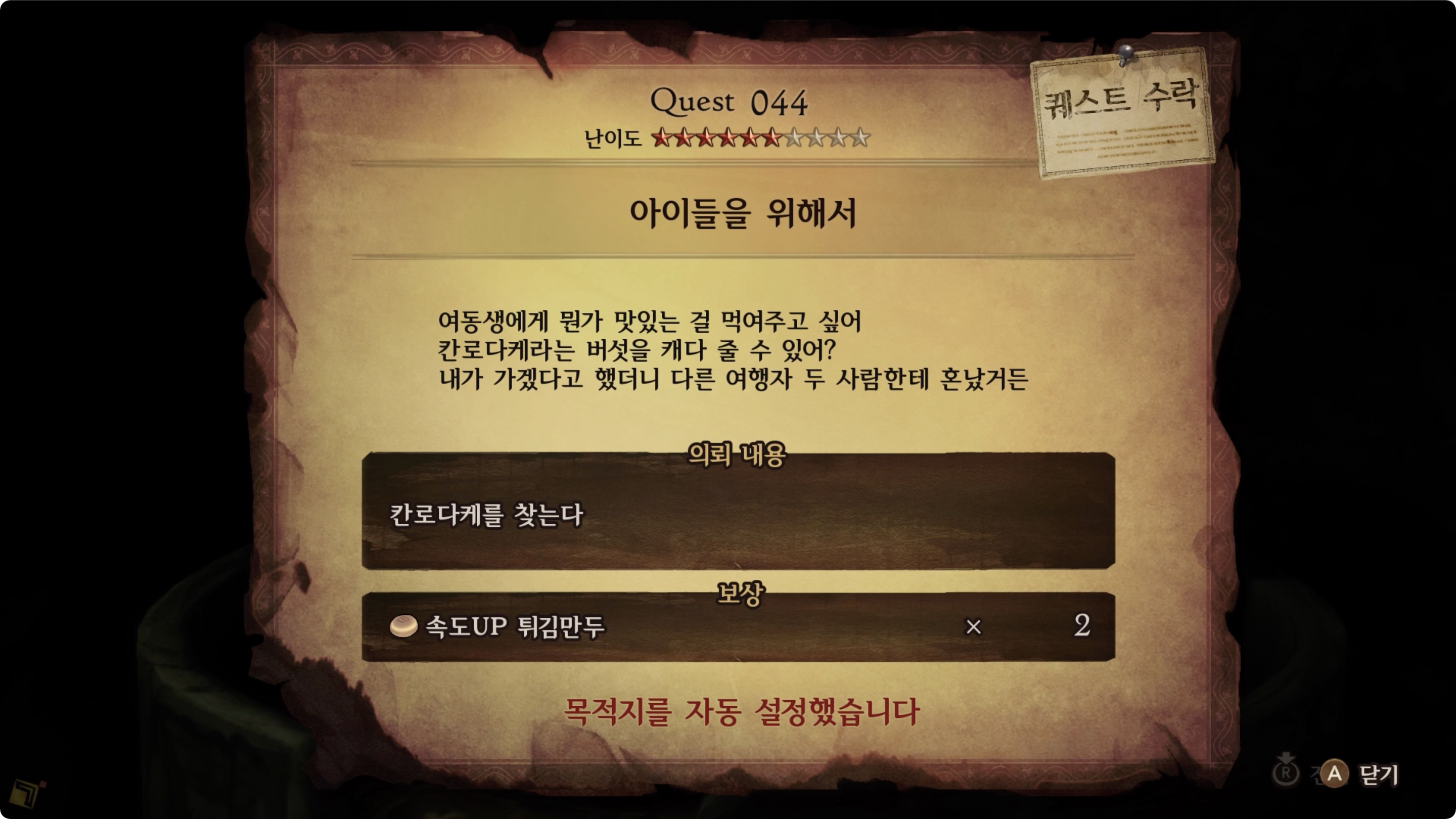 | 보상 | 속도UP 튀김만두 x2 |
