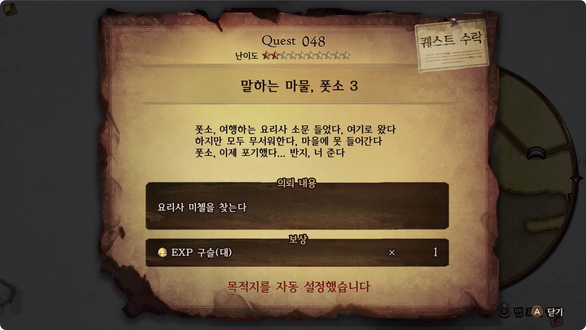 | 보상 | EXP 구슬(대) x1 |
