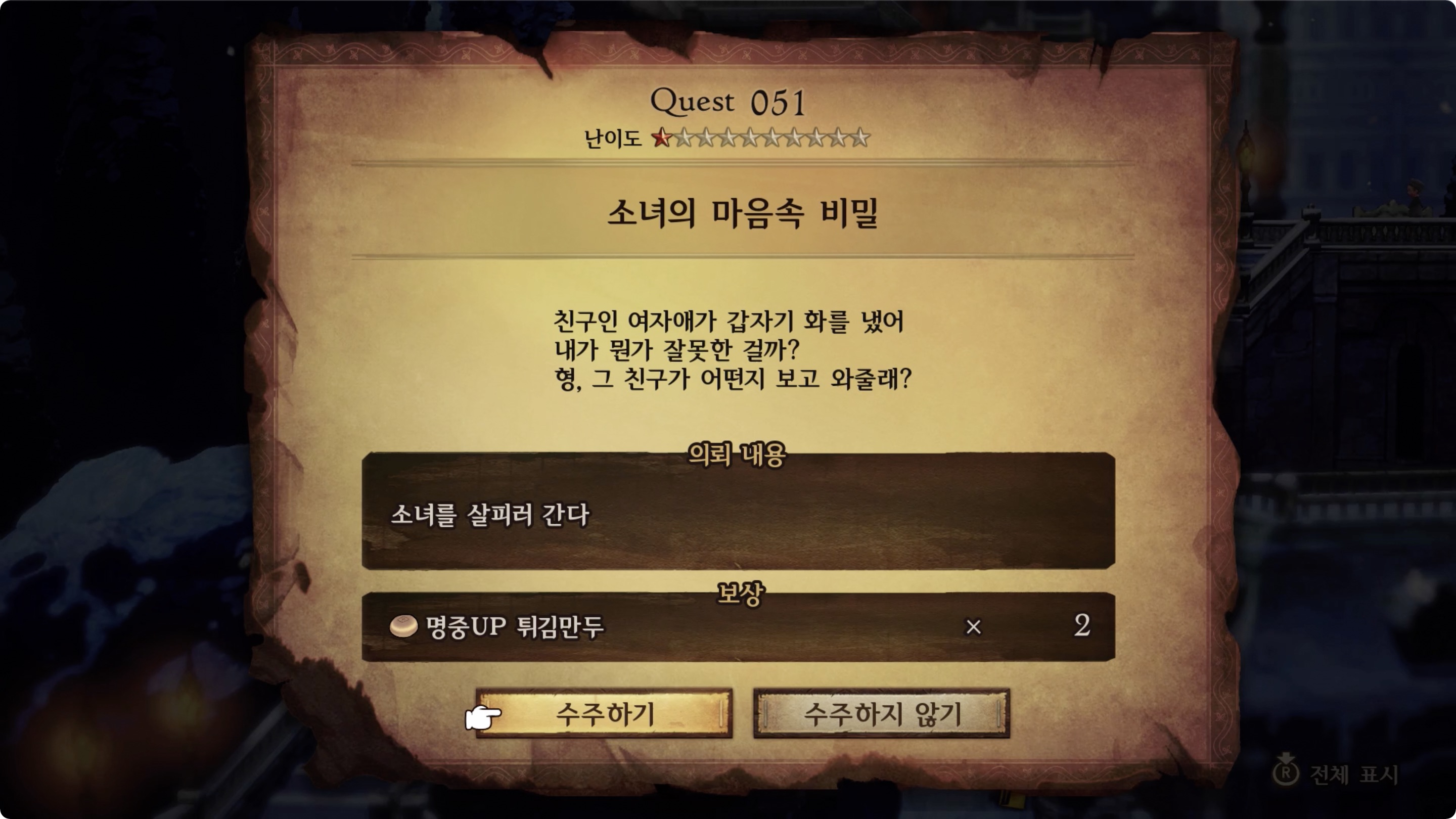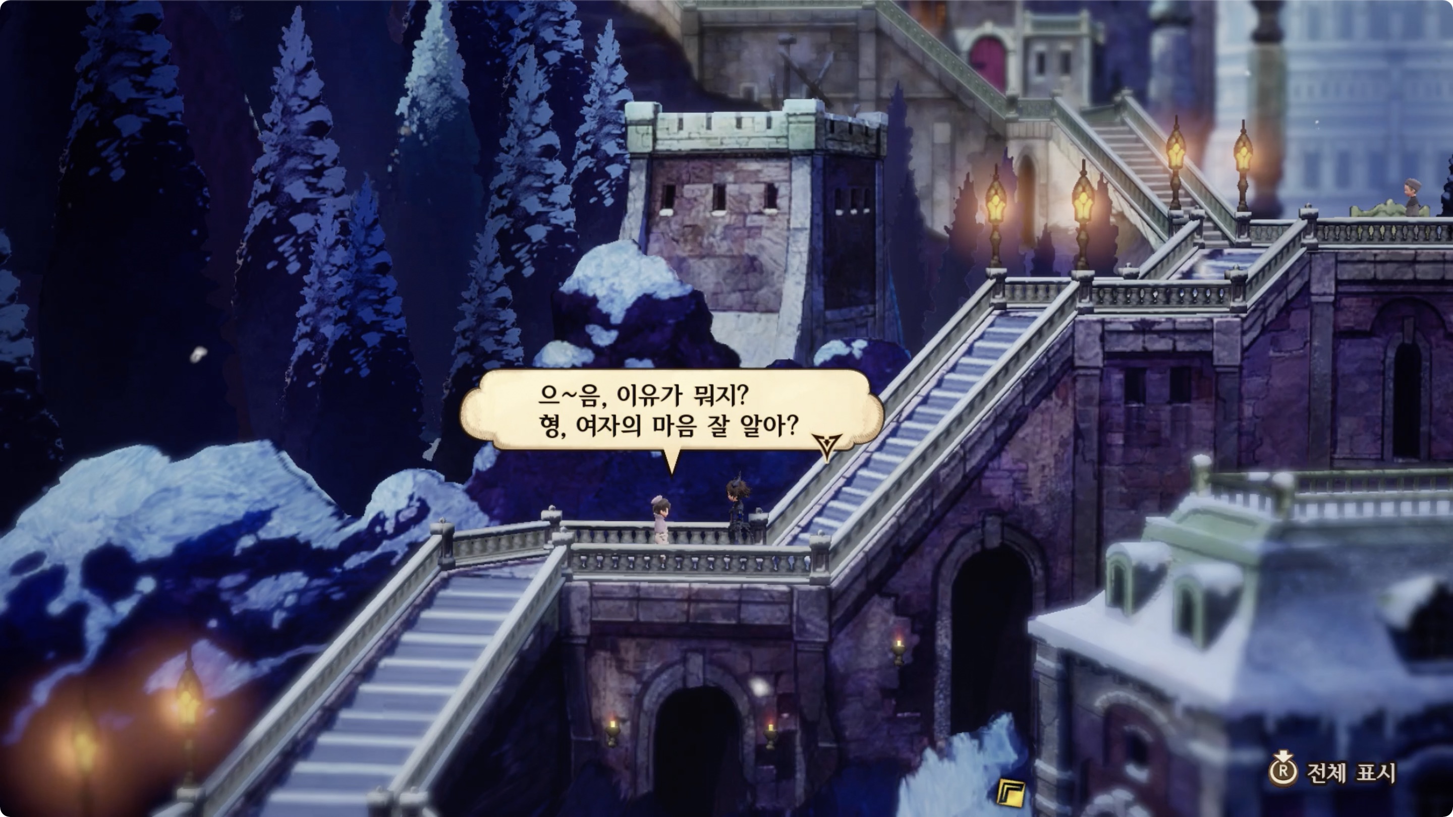 그냥 계단 바로 위에 있는 소녀와 대화를 한 후 다시 소년에게 보고를 하면 되는 간단한 퀘스트이다.